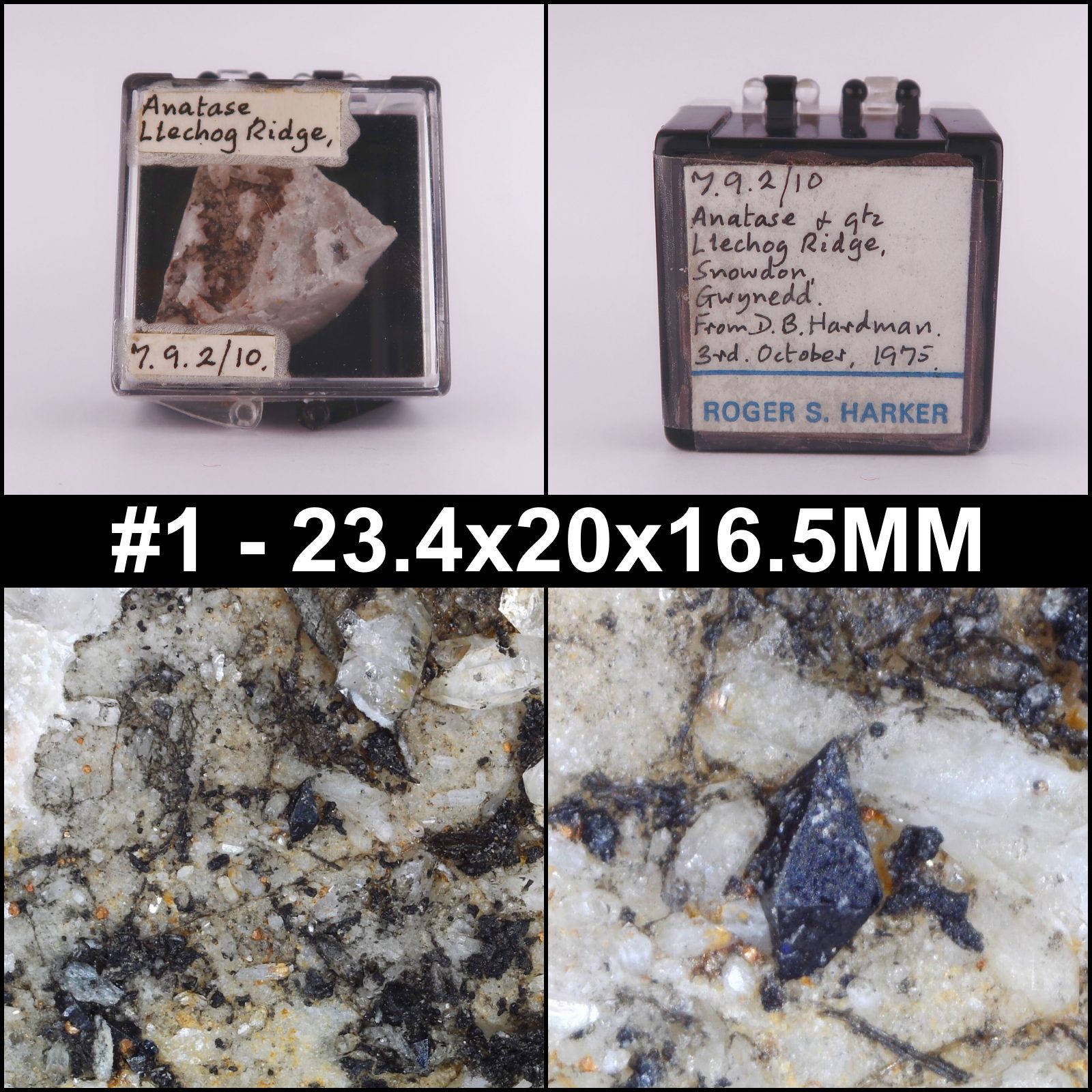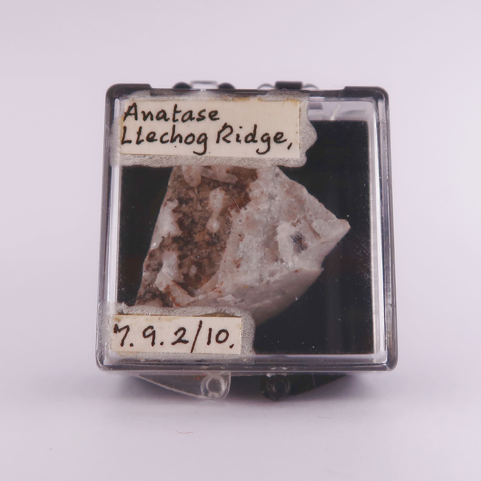 Nice thumbnail specimen of Anatase and Quartz from Llechog Ridge, Wales.