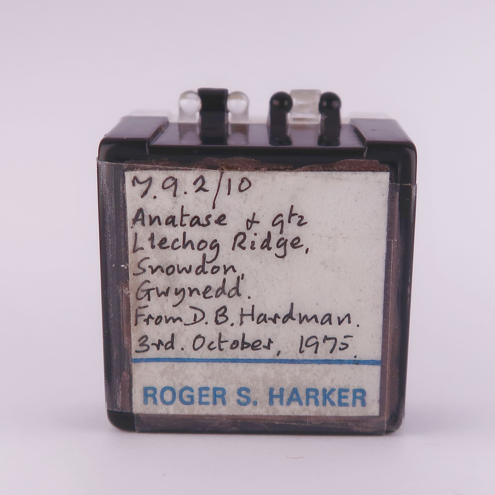 This specimen was part of Roger Harkers collection and has three of his labels glued to the perky box it comes mounted in.