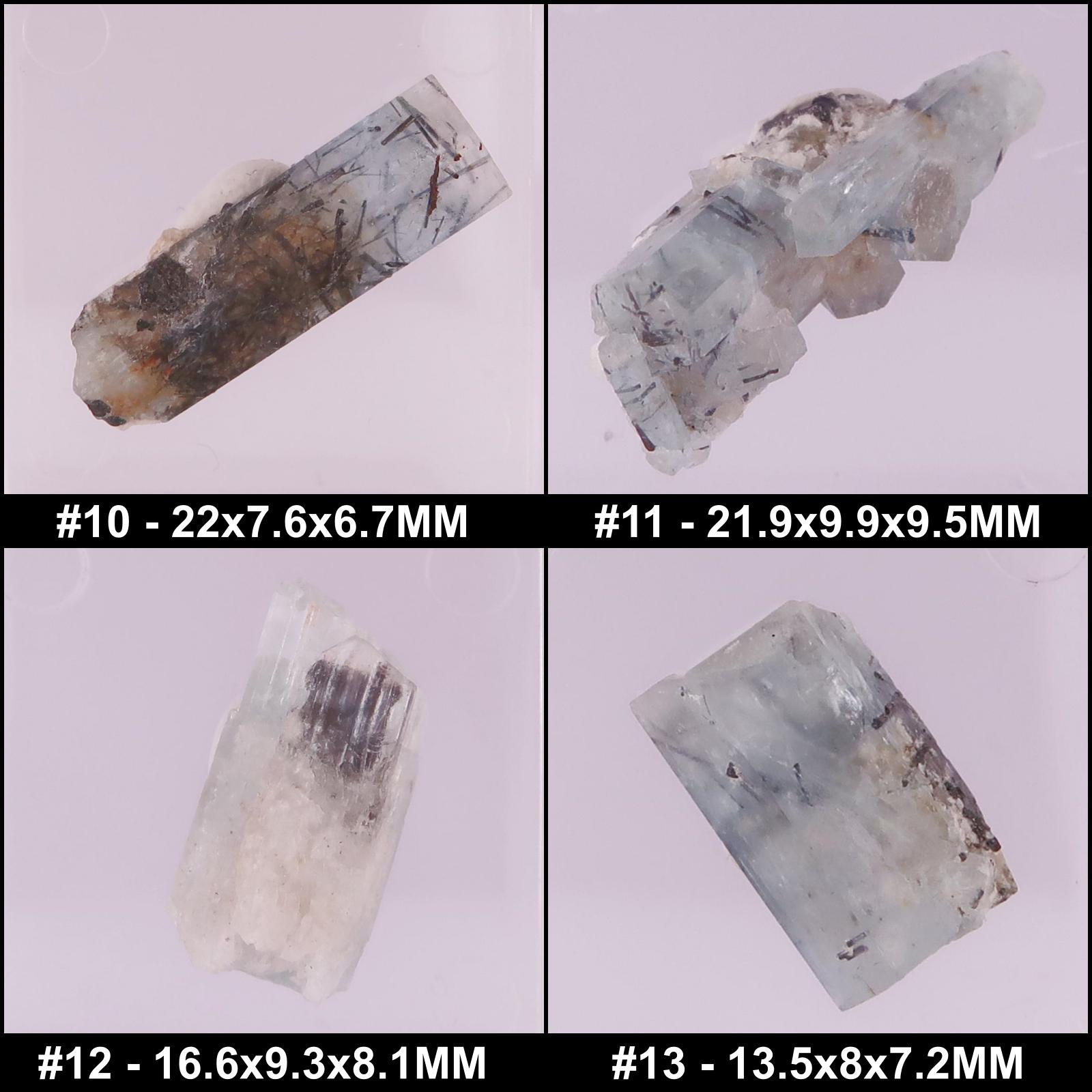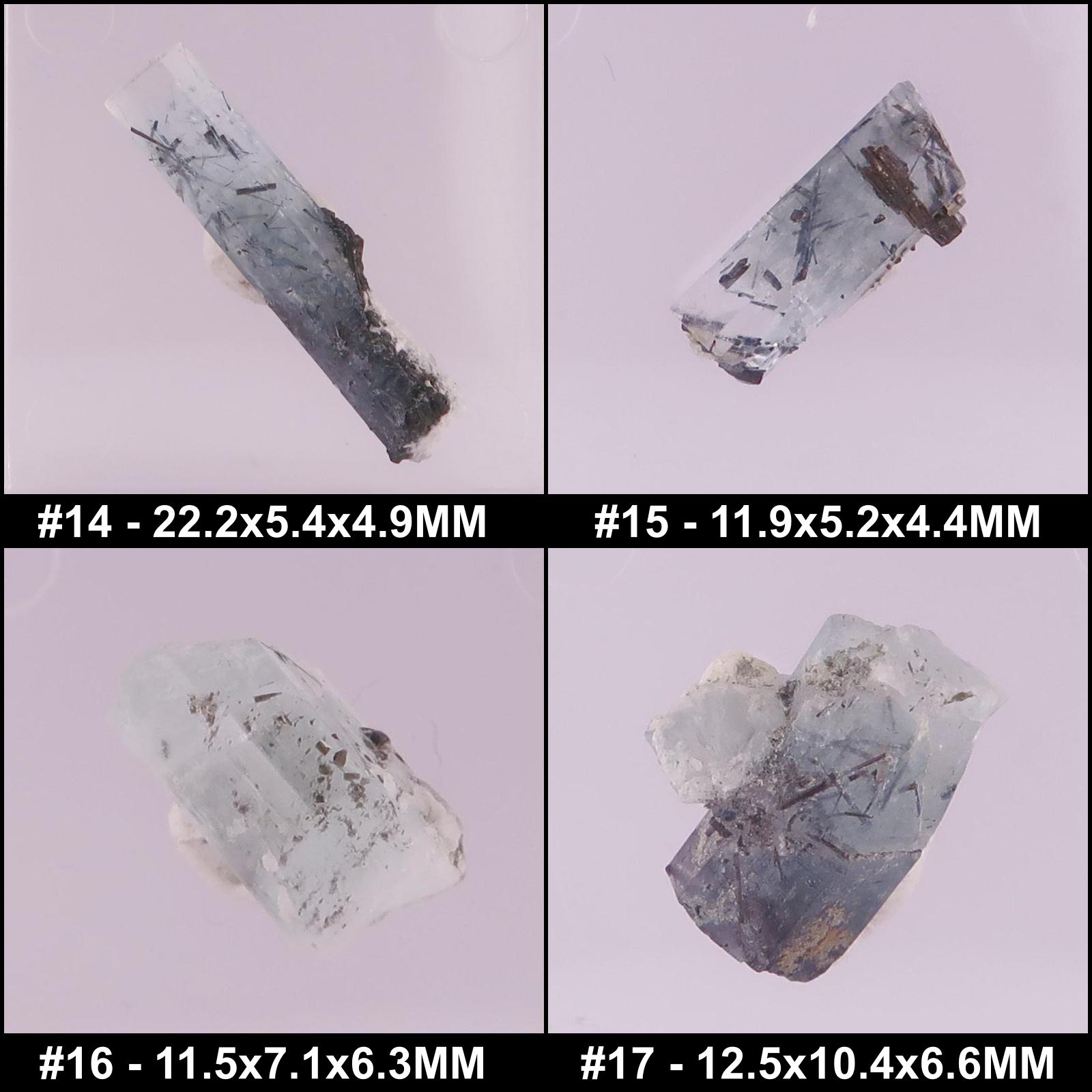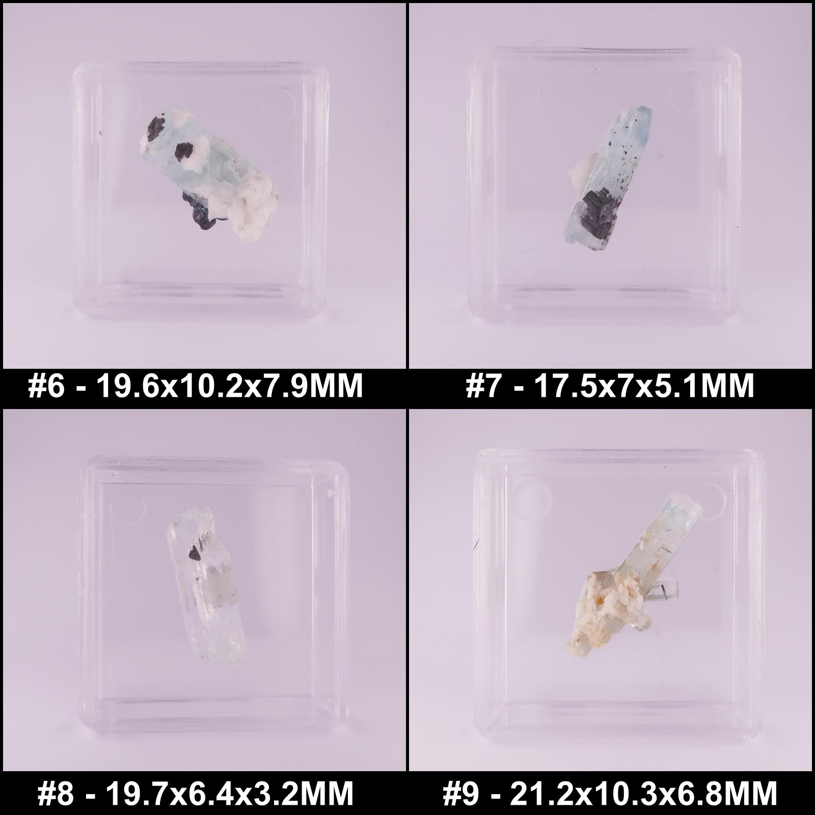 Specimens of Aquamarine with Tourmaline from around the world.