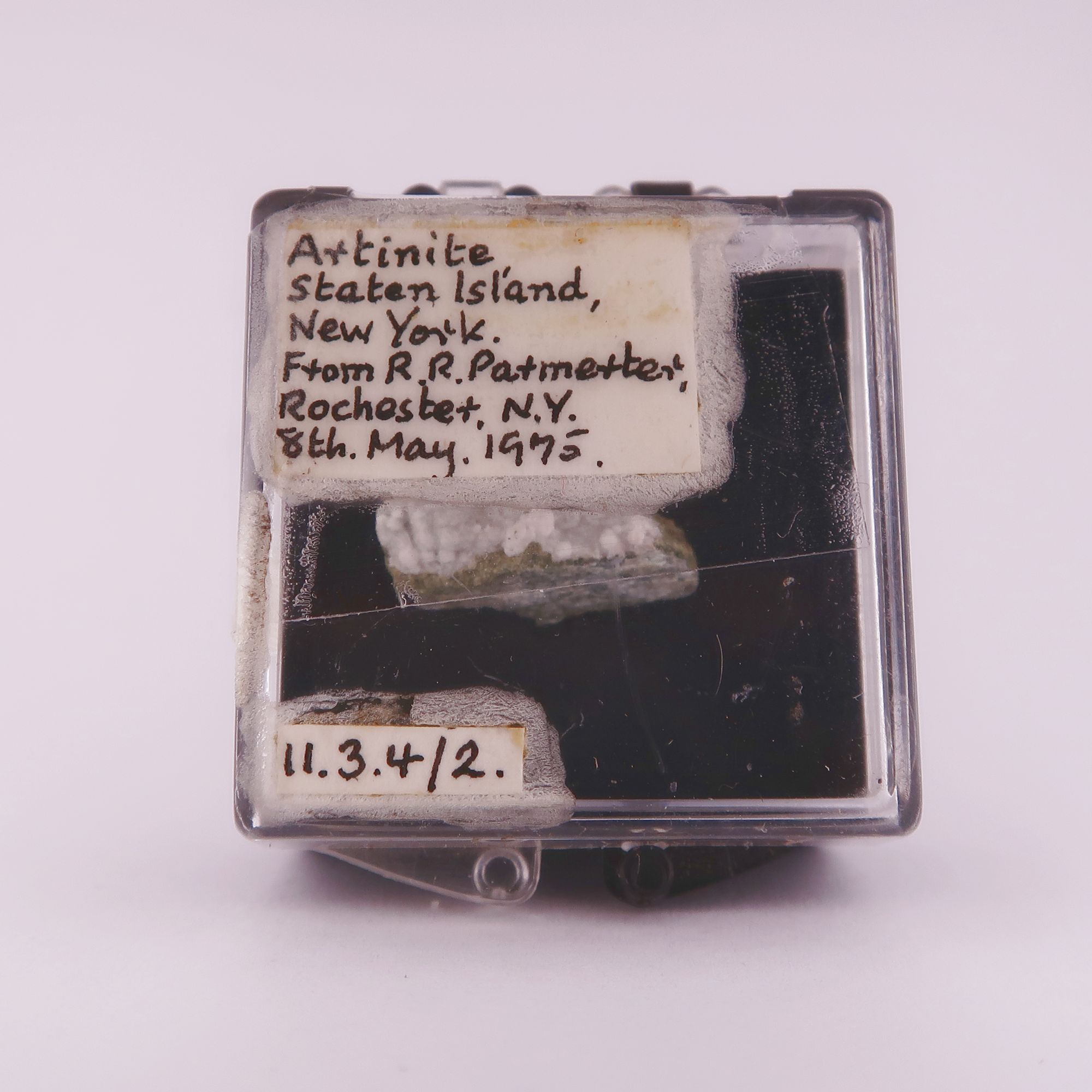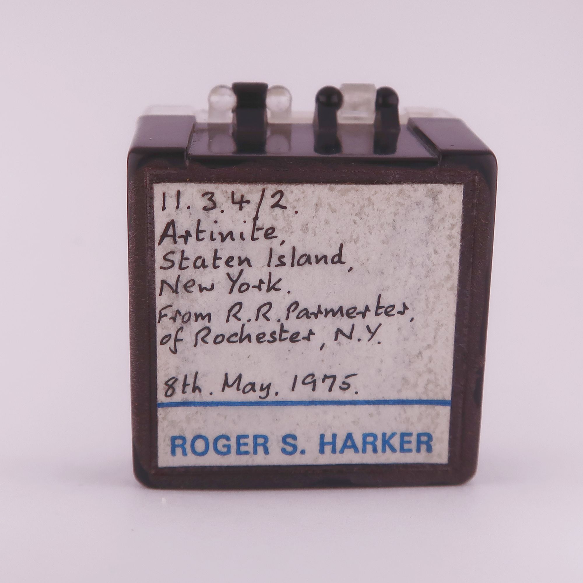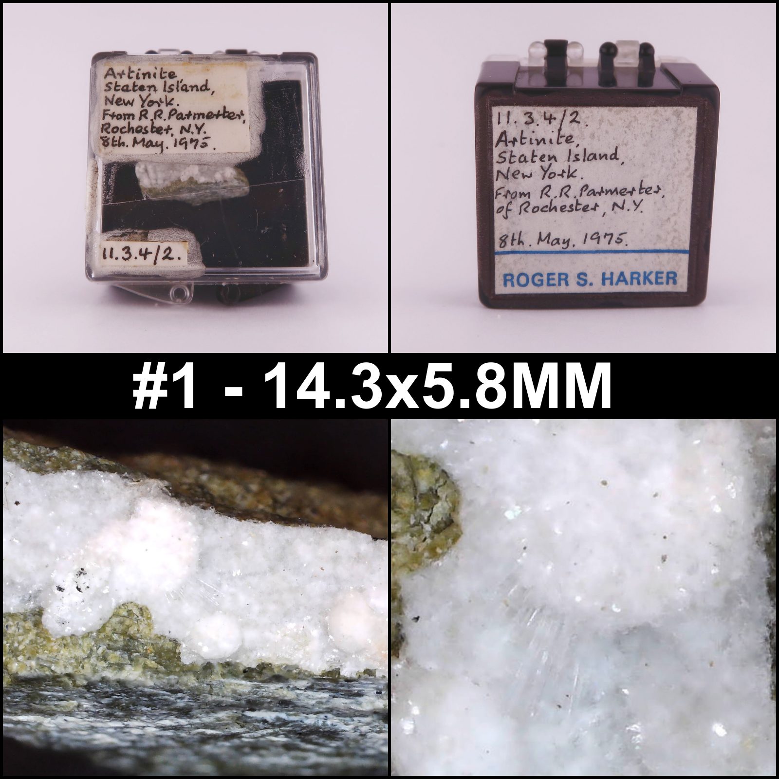 #1 - This specimen was part of Roger Harkers collection and has three of his labels glued to the perky box it comes mounted in. The specimen is mounted with glue into the box. Ex. Roger Harker, R.R. Parmenter collection.