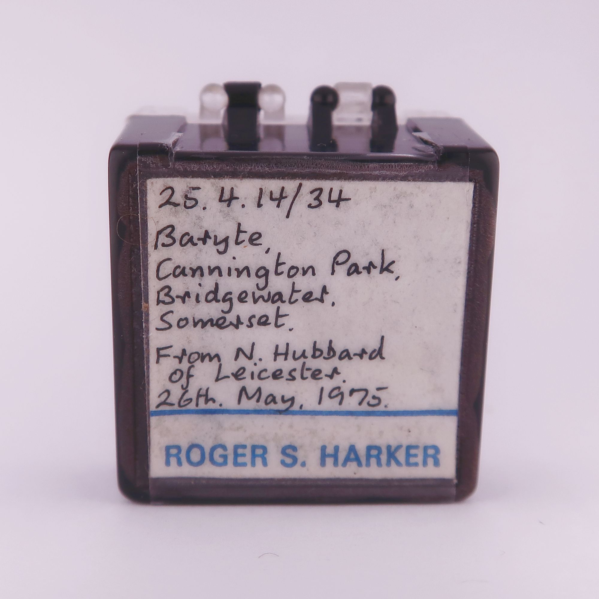 #1 – This specimen was part of Roger Harkers collection and has three of his labels glued to the perky box it comes mounted in. One had detached and has been stuck back on with a conservation grade tape.