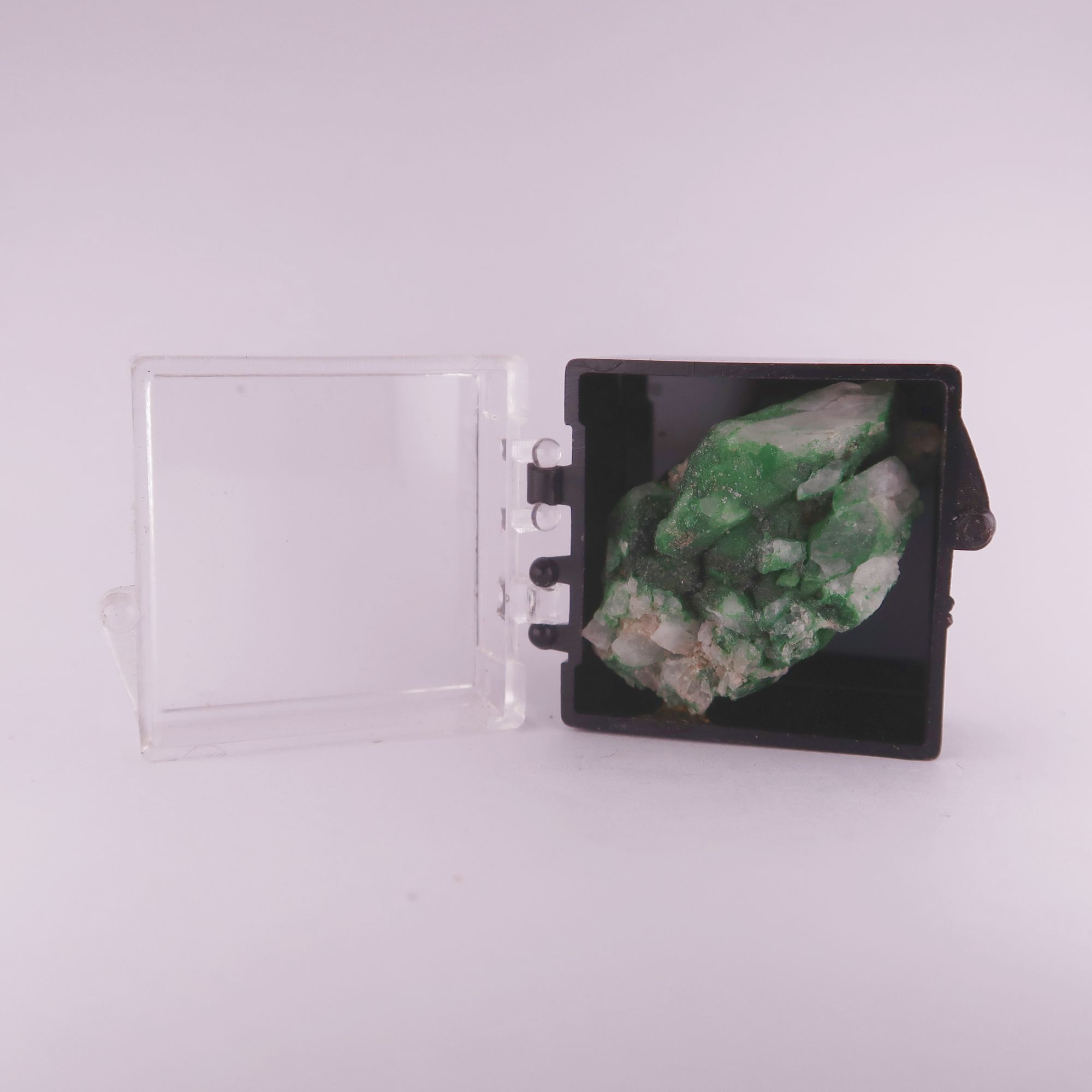 - #1 - The specimen is mounted with glue into the box. Ex. Roger Harker collection. There is a label to the back but this does not have any collectors names on; provenance is known by dozens of specimens from the same lot and the handwriting / accession number. Quite an early one, too, dated 1966.