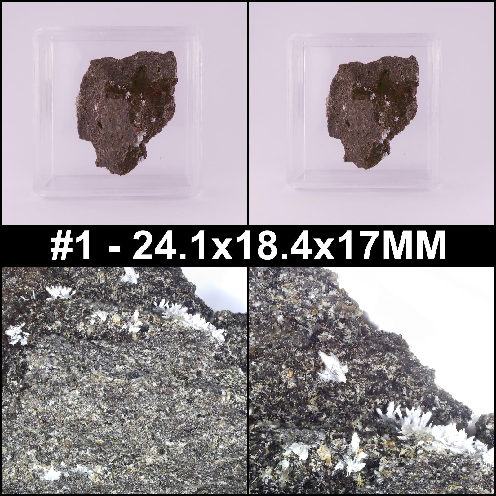 Not the most glorious of specimens, with a number of areas of white micro calcite crystals.