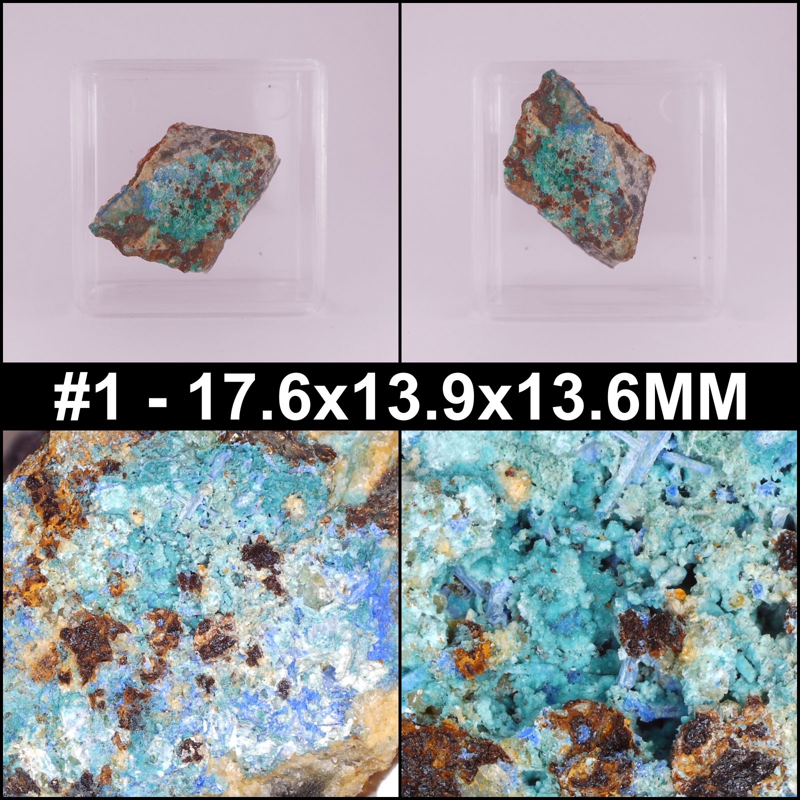 Small but nice specimens of caledonite and linarite, typically those with little provenance. These make good reference specimens at a budget price point.