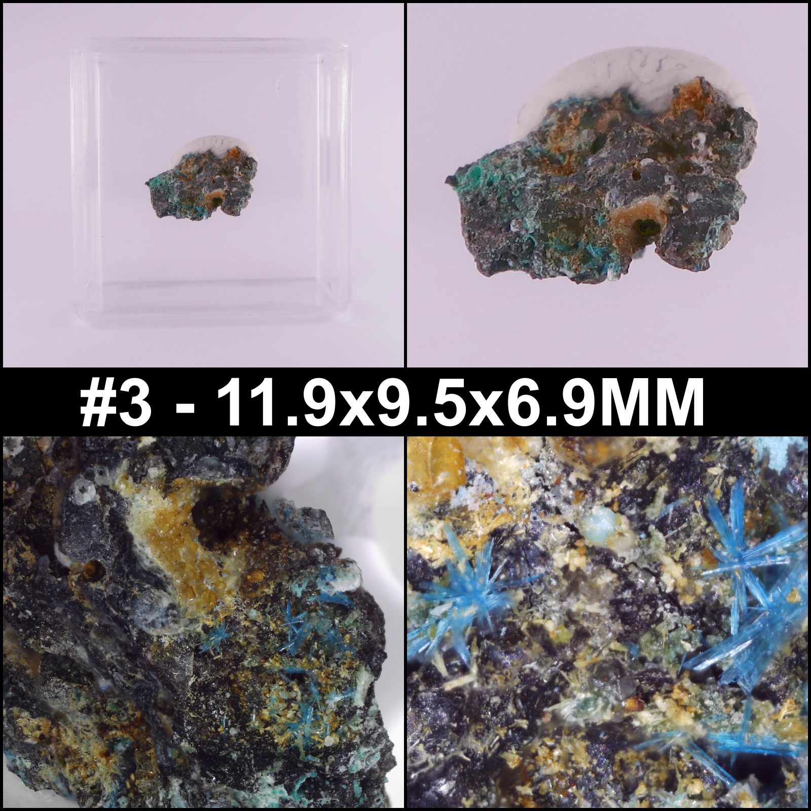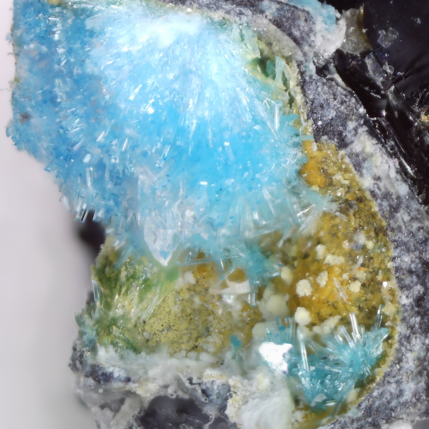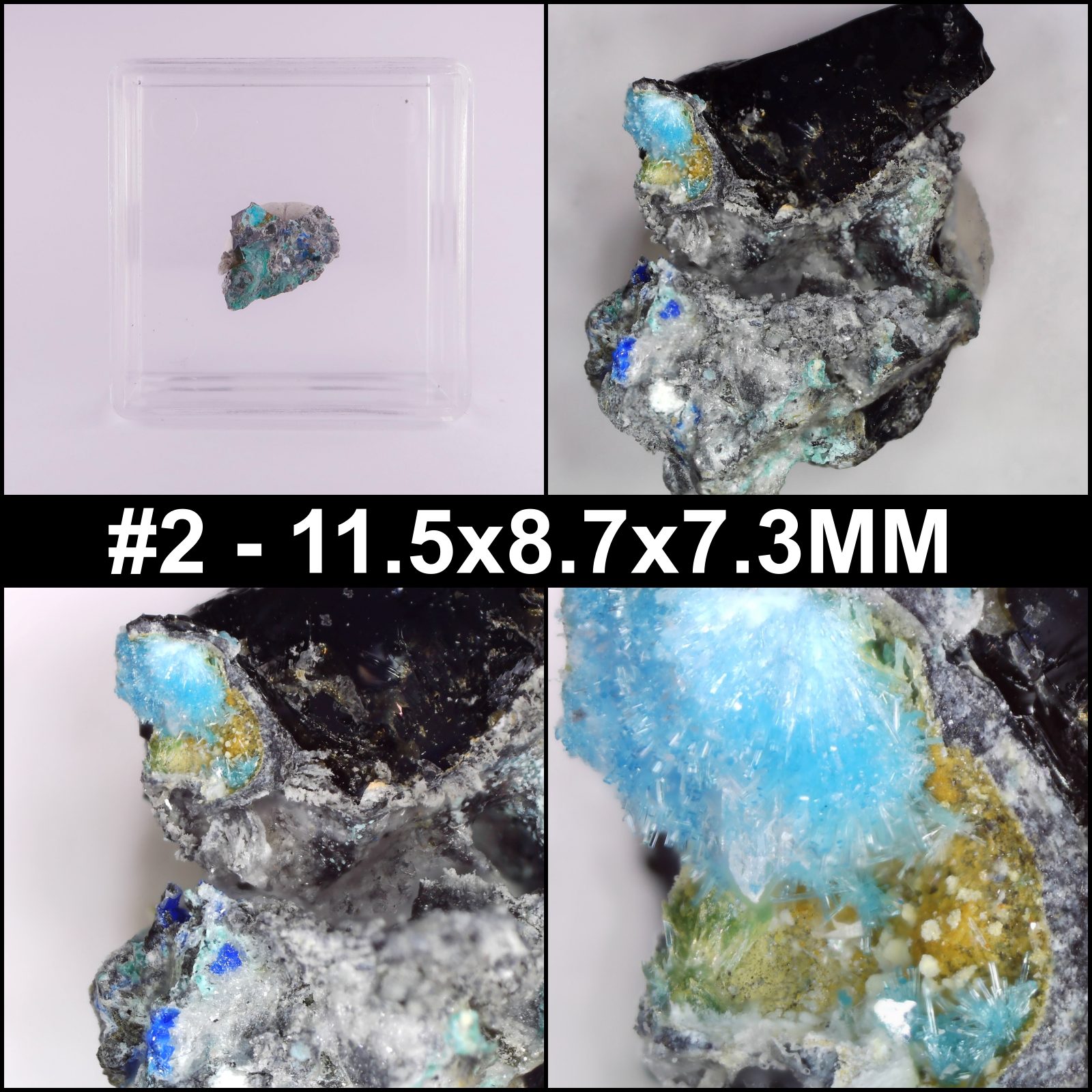 Exceptional neon blue crystals visible under high magnification - which is essential for these specimens.