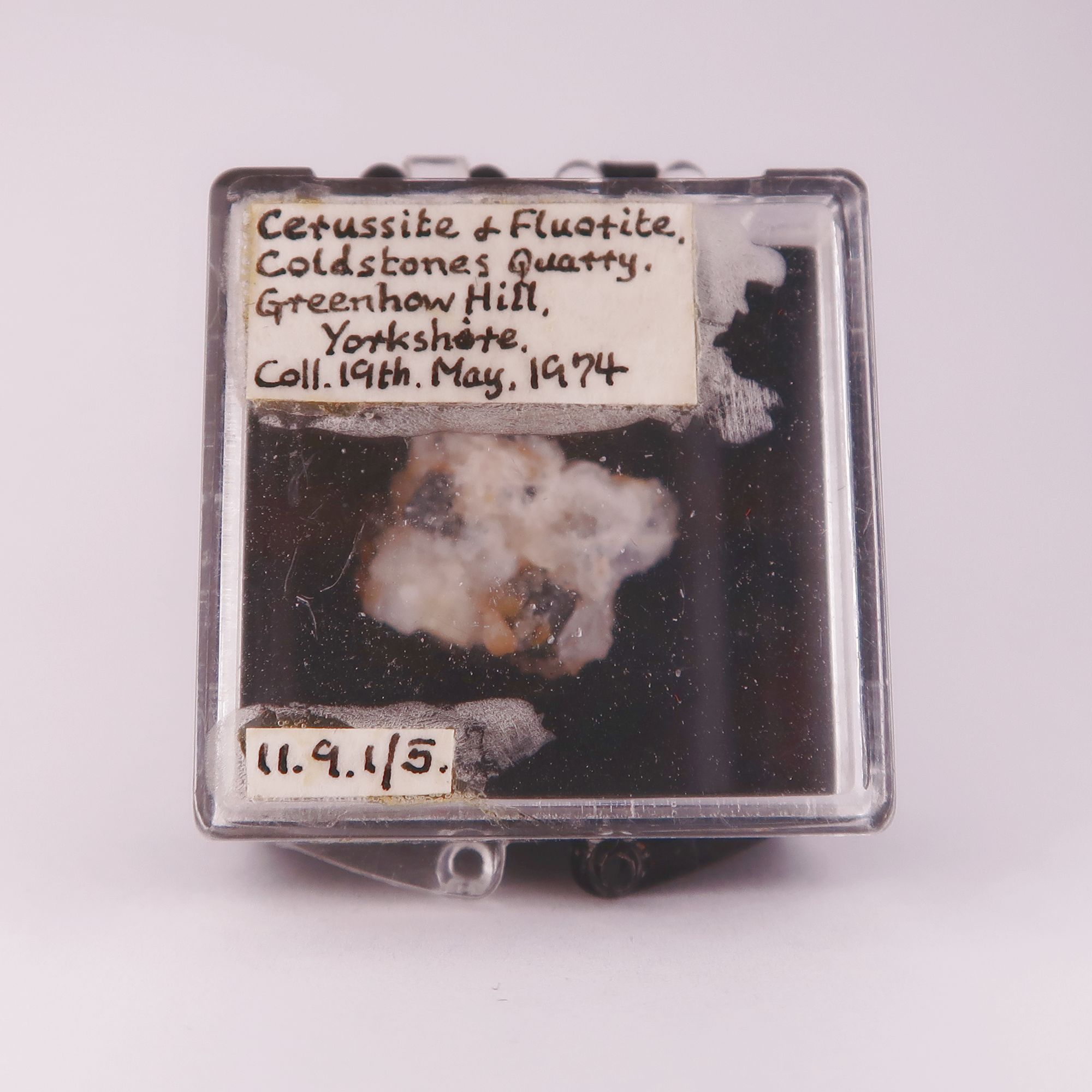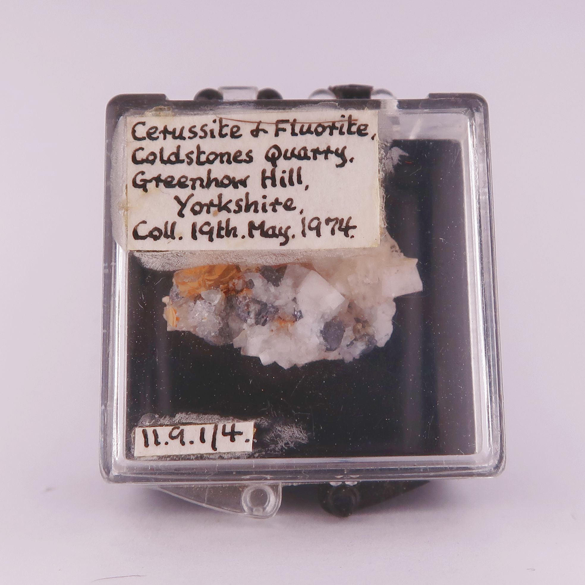 Cerussite and Fluorite from Coldstones Quarry, North Yorkshire