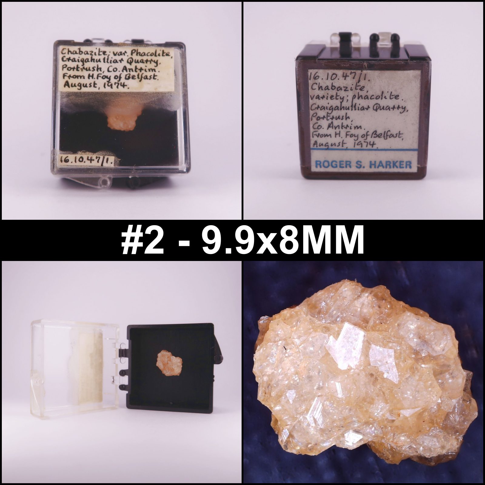 - #2 - Comes boxed with our ID label; this specimen was part of Roger Harkers collection and has three of his labels on. It is mounted with glue and can't be removed to be measured fully. The labels are glued to the box; one was loose and has been re-attached with a conservation grade tape. Ex. Roger Harker, Harry J Foy collections.