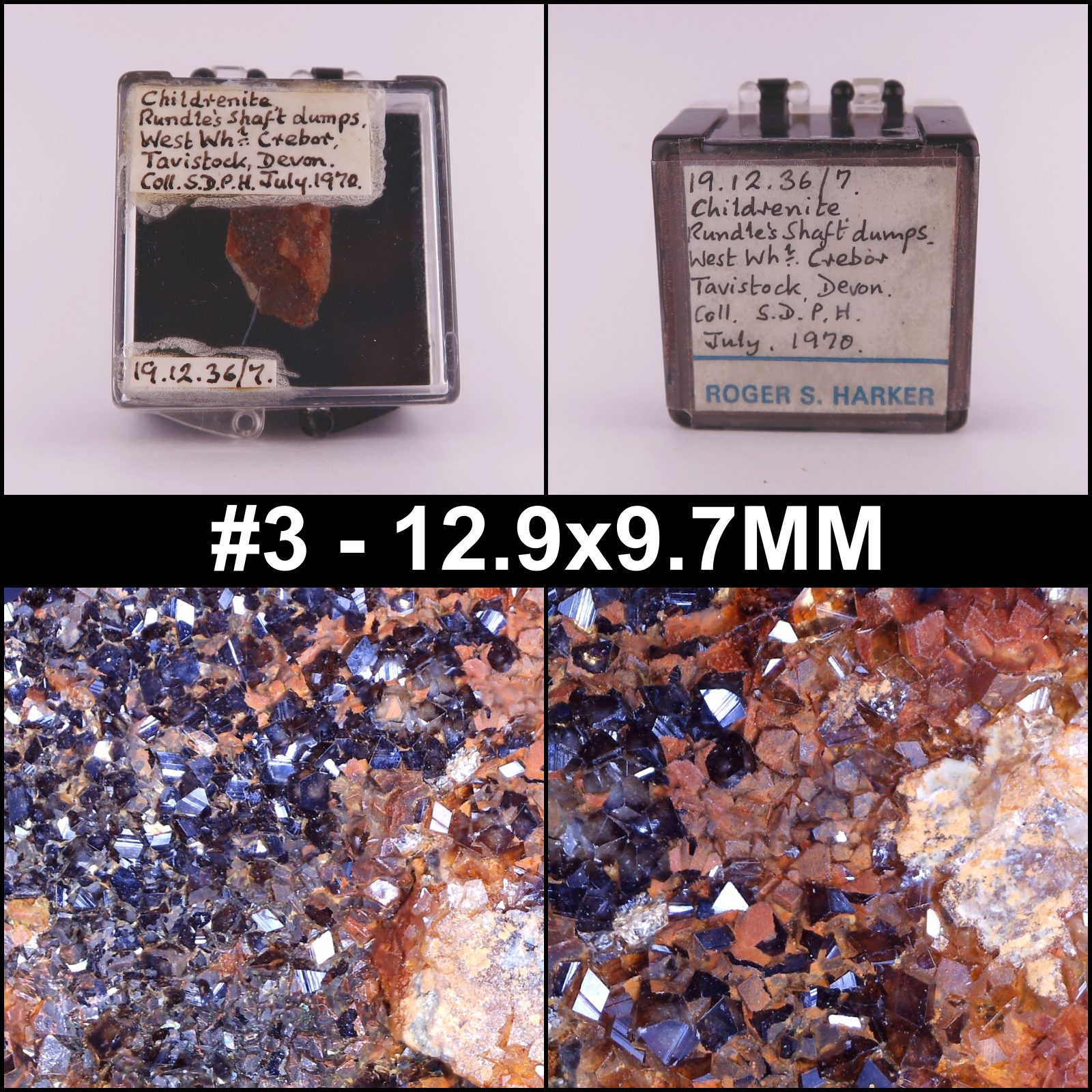 - #1 - This specimen was part of Roger Harkers collection and has three of his labels glued to the perky box it comes mounted in. One had detached and has been stuck back on with a conservation grade tape. The specimen is mounted with glue into the box. Ex. Roger Harker collection.