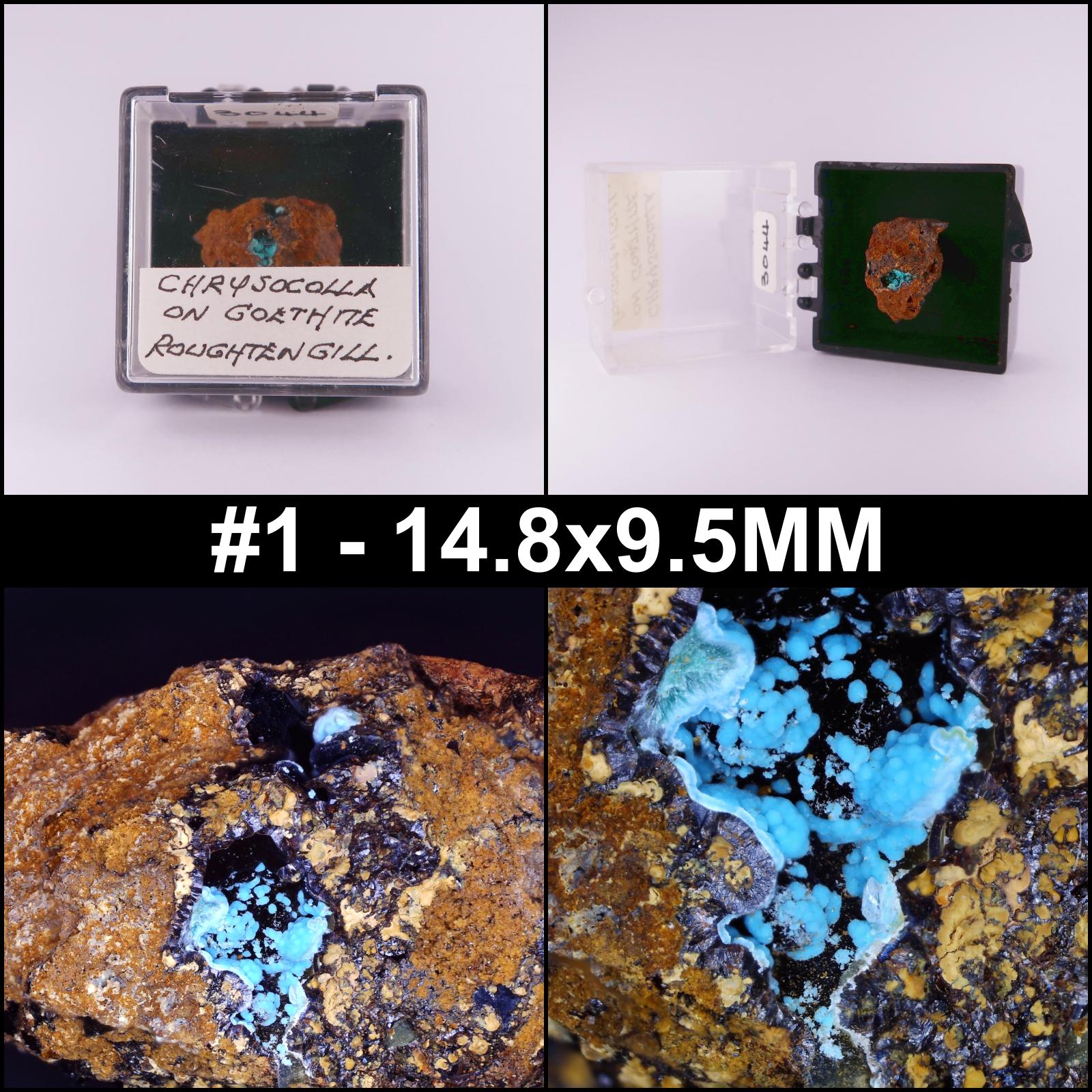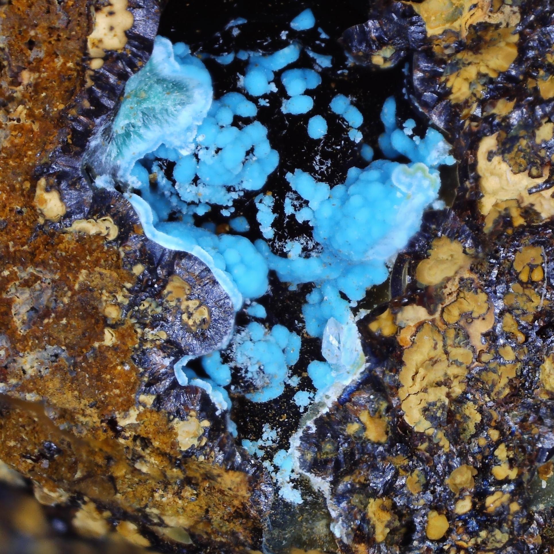 Chrysocolla on Goethite from Roughton Gill, Caldbeck, Allerdale, Cumbria, England, UK