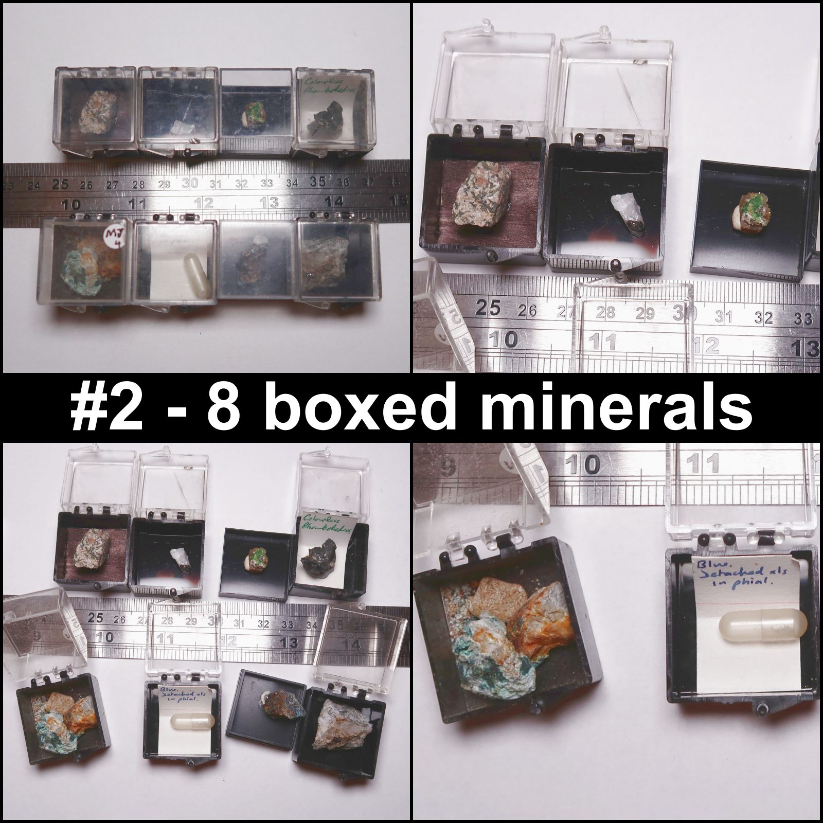 - #2 - 8 boxed minerals, primarily unlabelled.