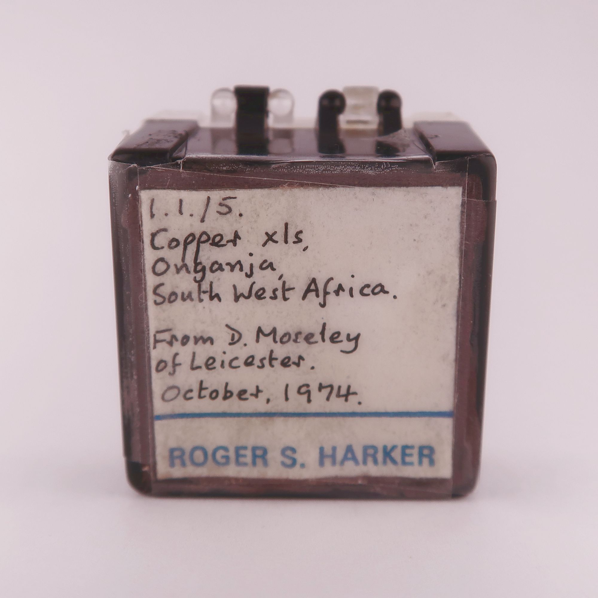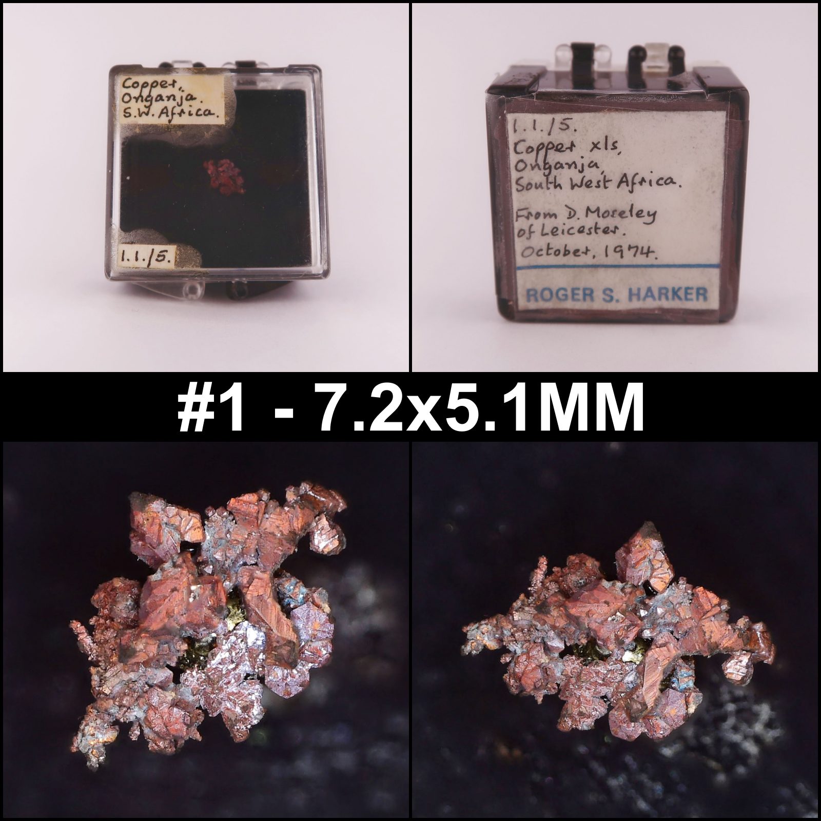 #1 - Comes in the original box with our ID label; this specimen was part of Roger Harkers collection and has three of his labels on. It is mounted with glue and can't be removed to be measured fully. The labels are glued to the box - one had come loose and has been reattached with a conservation grade tape. Ex. Roger Harker, D. Moseley collections.