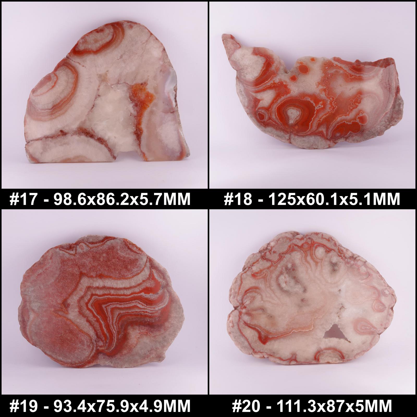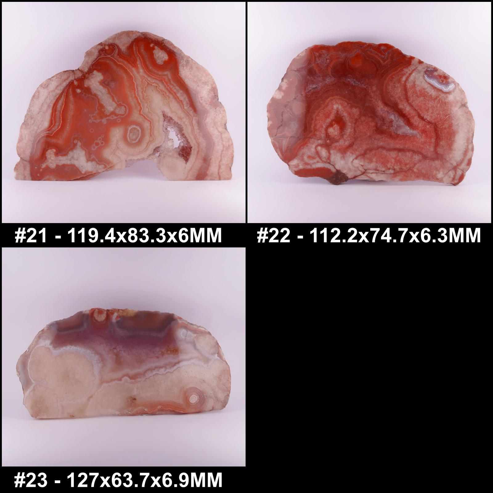 Lovely mixed pink and red slices of Dulcote Agate, from Somerset in the UK.
