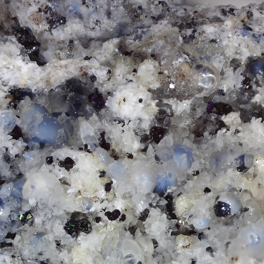 The reason I call this one odd? Look at the form - tiny opaline spherules. I immediately dismissed this as a fluorite when I saw the label, until I'd done some research and seen other specimens from this locale.