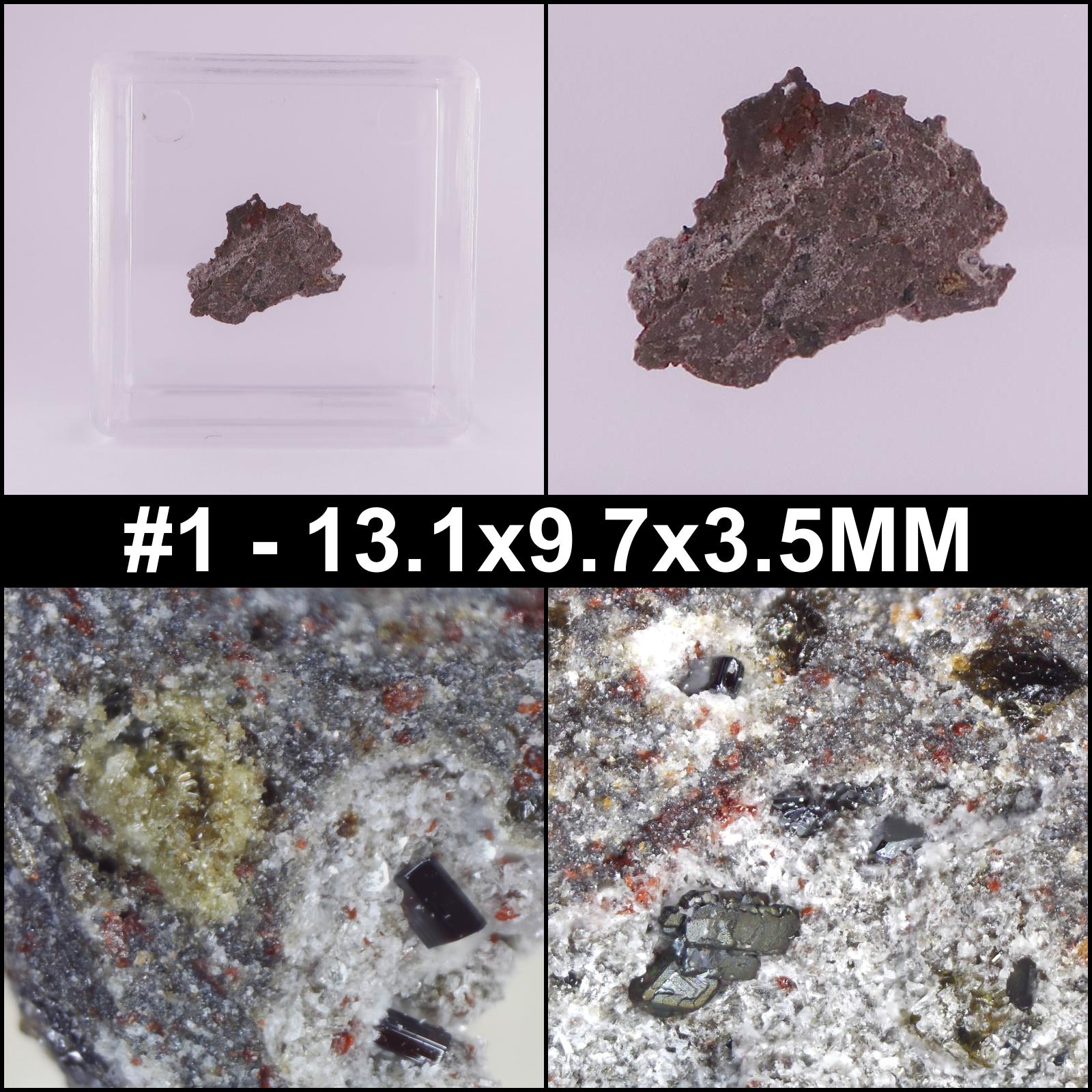 - #1 - Few unidentified minerals on this matrix, including a nice pocket of a green mineral - probably an amphibole.