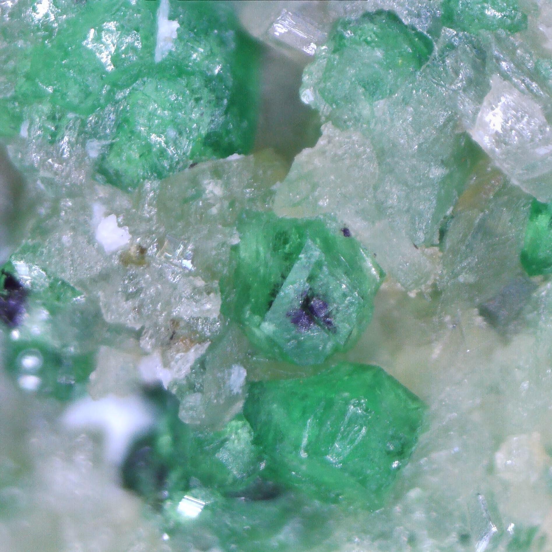 Nice thumbnail specimen of green Grossular Garnet from the Orford Nickel mine, Canada.