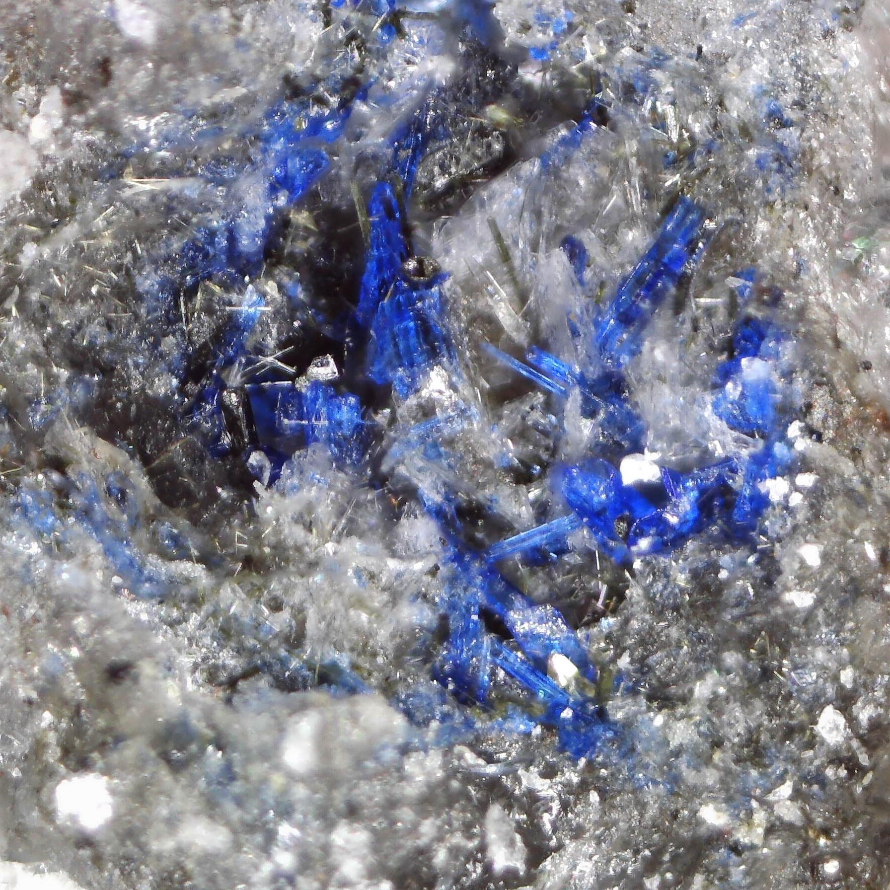 Very dark blue micro crystals of Hauyne, visible only as spots with the naked eye. Magnification essential.