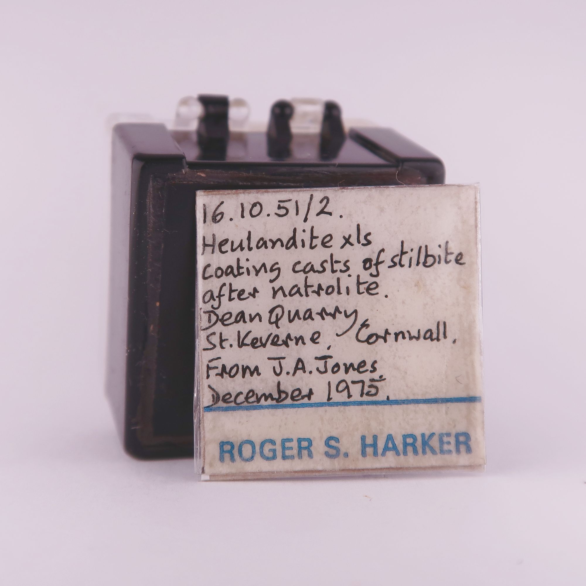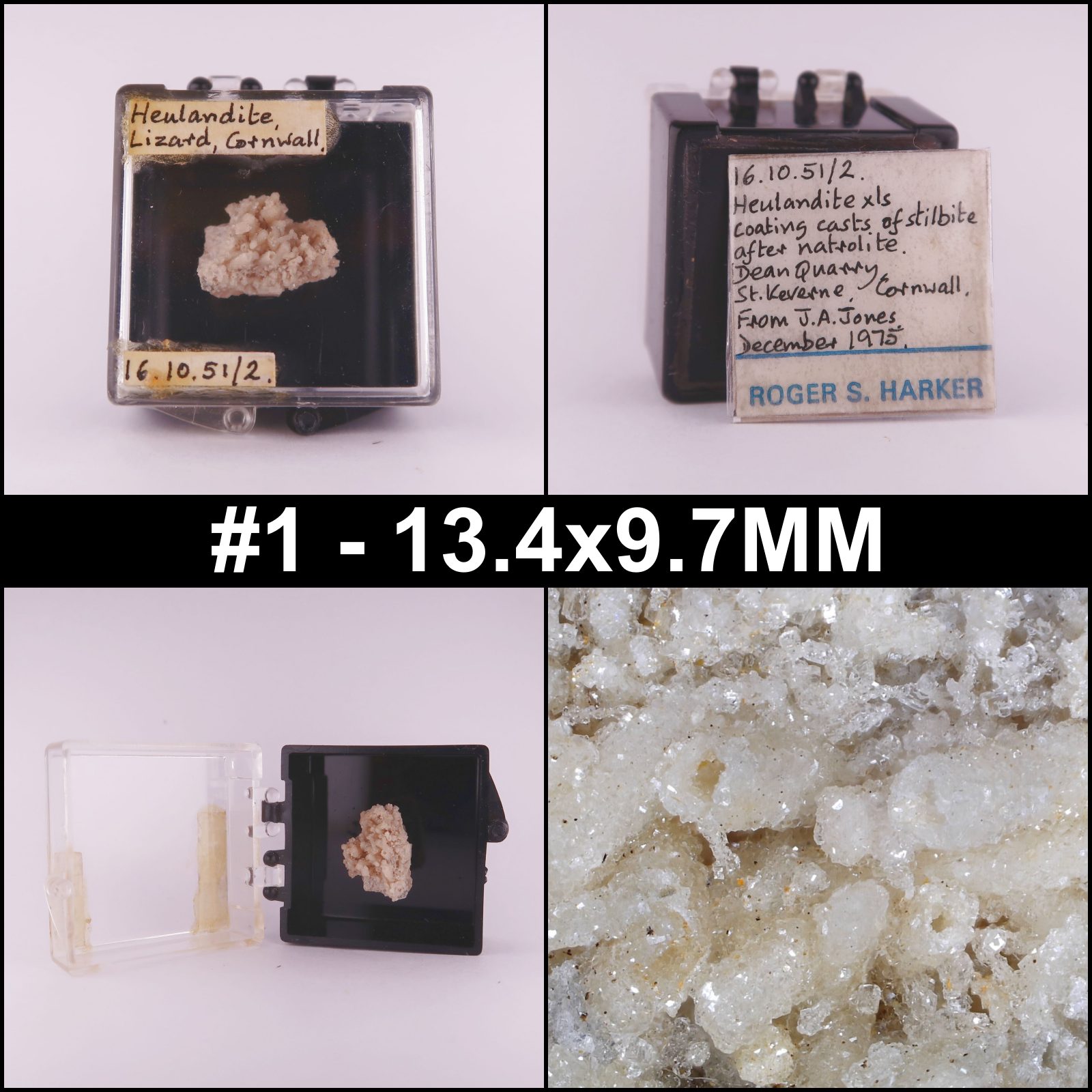 - #1 - The specimen is mounted with glue into the box. Ex. Roger Harker, J.A. Jones collections. There was originally been a larger label glued on the back with more info and the Harker collection name, this came loose and has been stored separately - it is included.