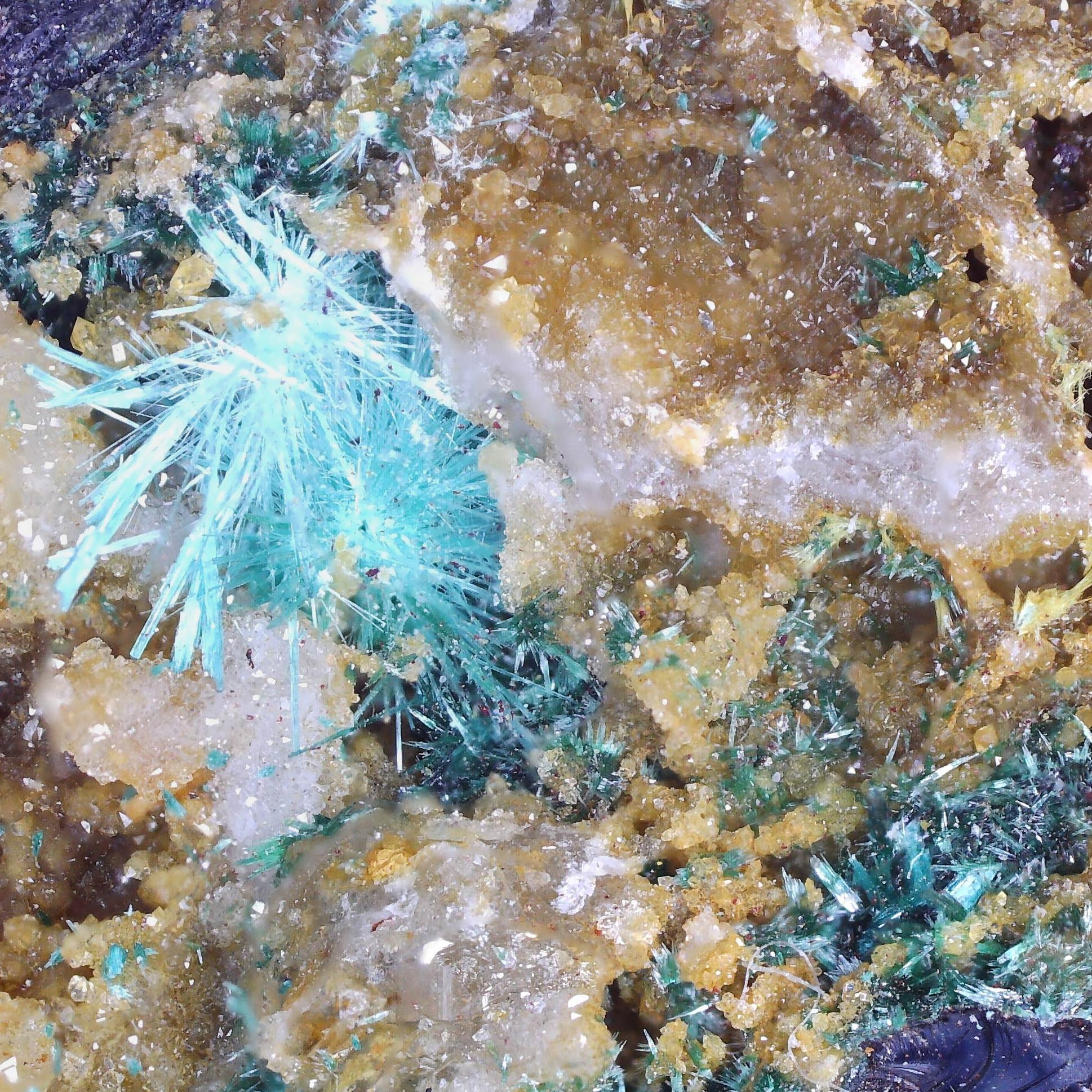 This is, primarily, a specimen of malachite, which forms quality crystals visible under magnification.