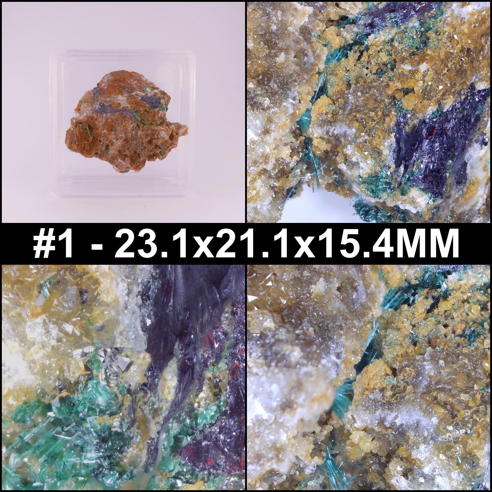 Nice little micro specimen of malachite, cuprite, and quartz from the Great Australia Mine, Australia.