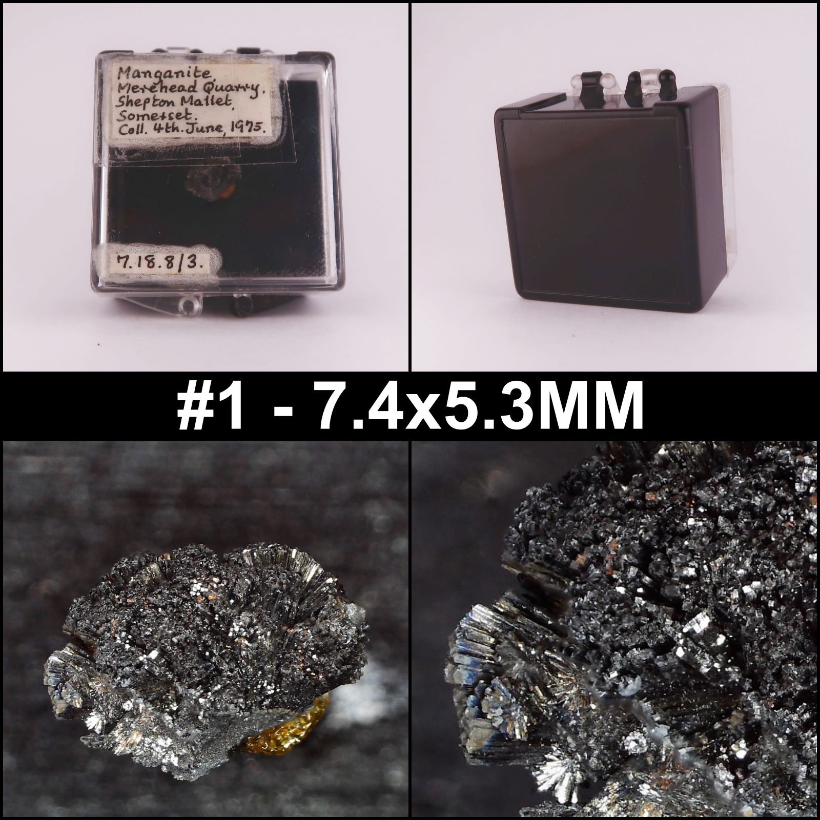 Micro specimen of Manganite from Torr Works Quarry, Somerset.