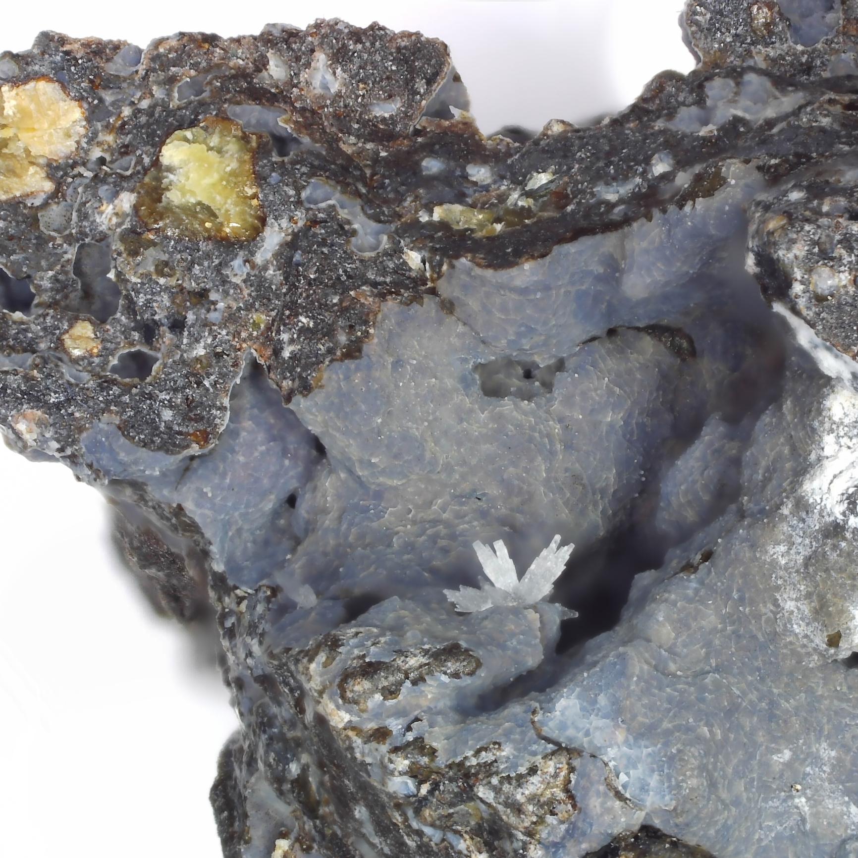 Blue-grey mineral is possibly Montmorillonite, but hasn't been analysed.