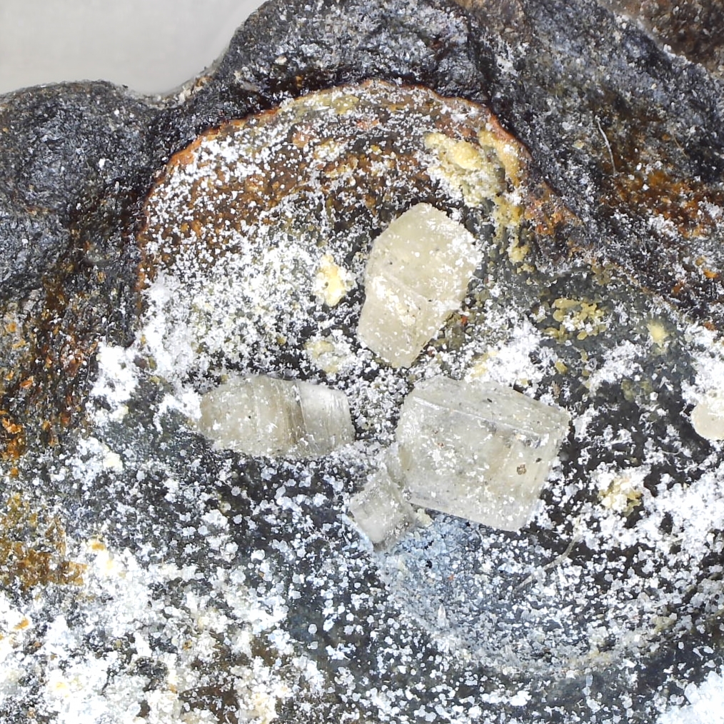 - #1 - nice specimen of several phosgenite crystals on slag matrix - no location known unfortunately. Brightly fluorescent under 365nm UV light, although unfortunately I forgot to take a photo.
