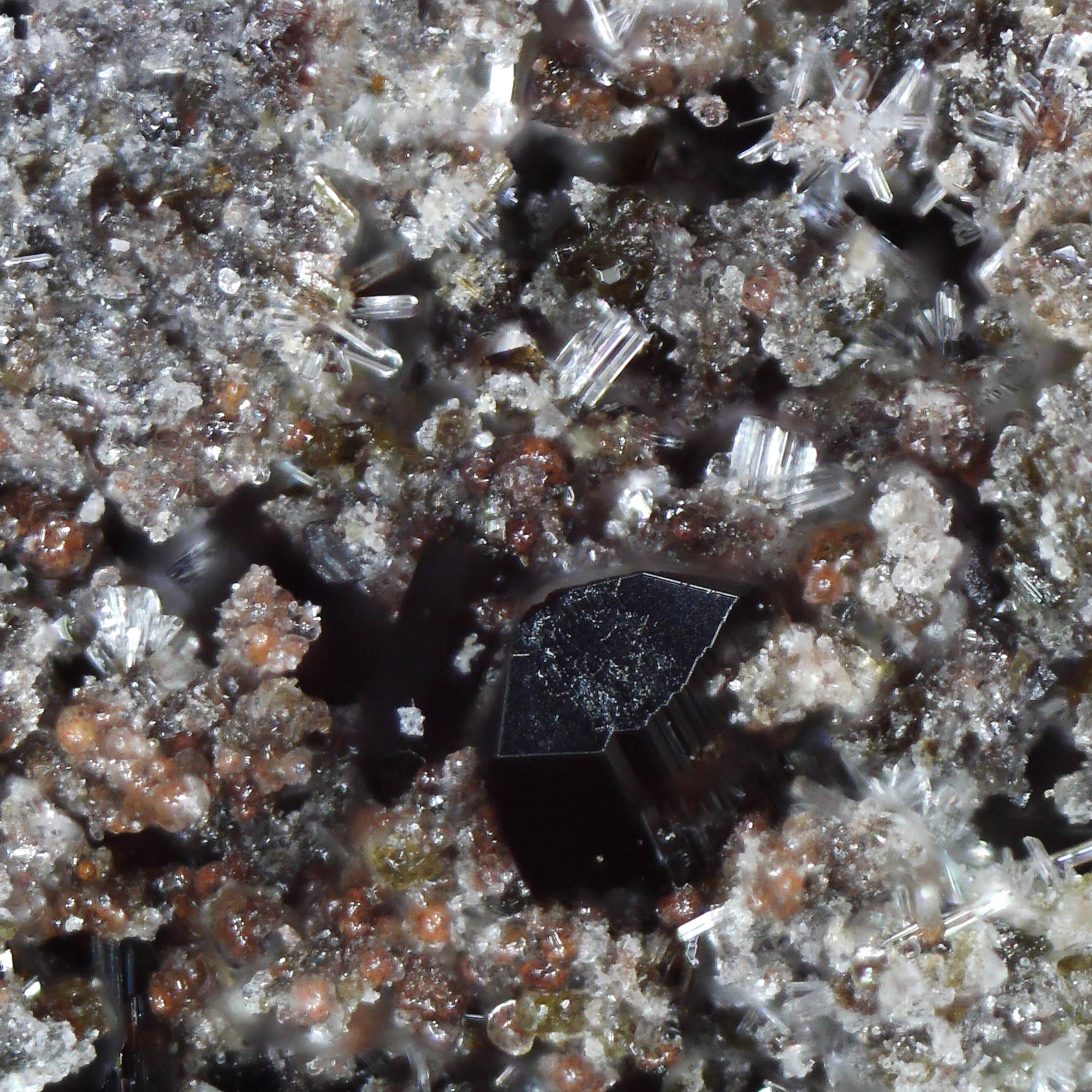 Micro crystals of pseudobrookite on matrix from Bellerberg volcano, Germany.