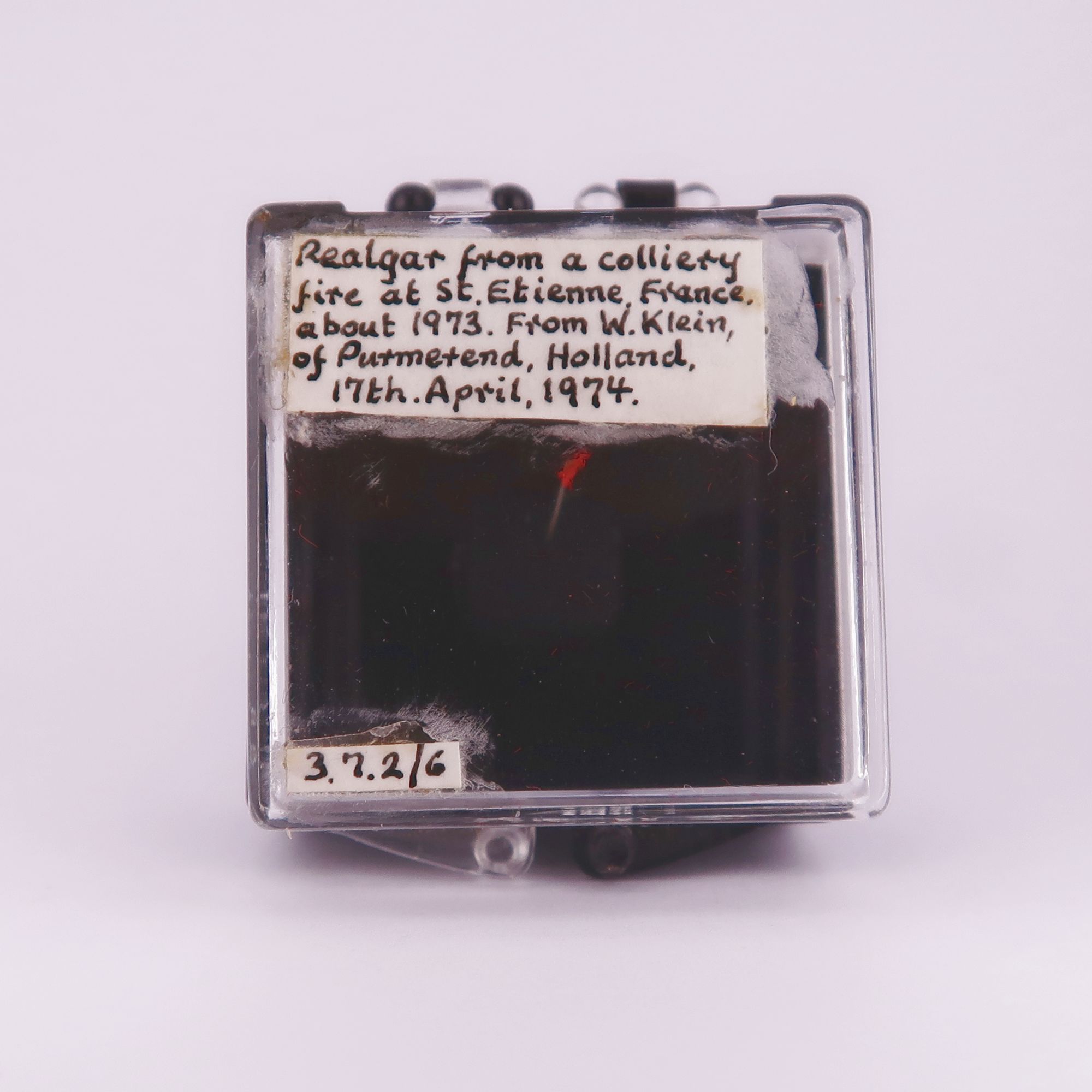 Should be stored in the dark - exposure to light will potentially convert this mineral into para-realgar.
