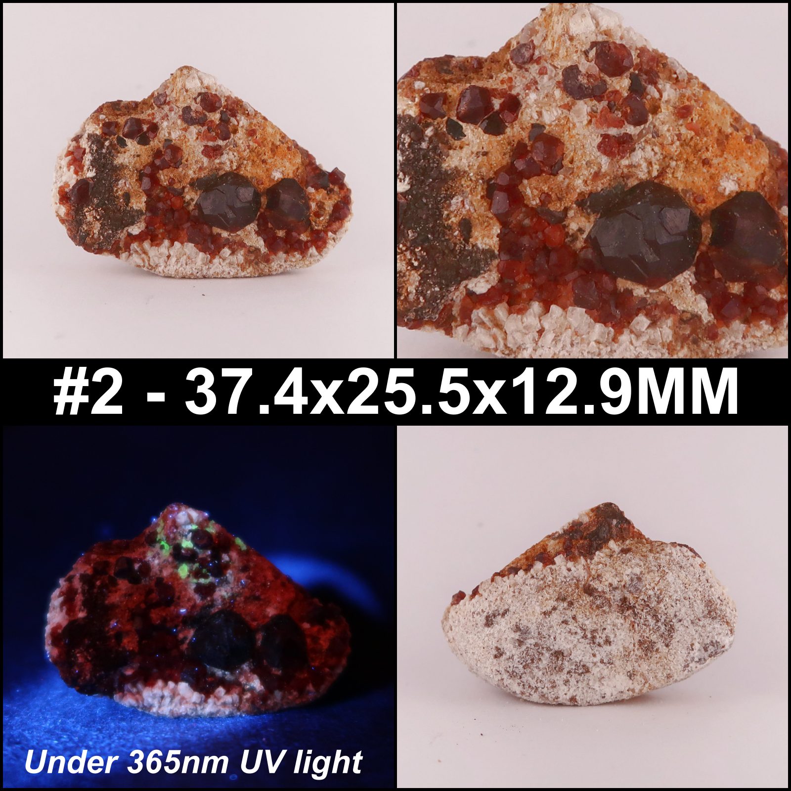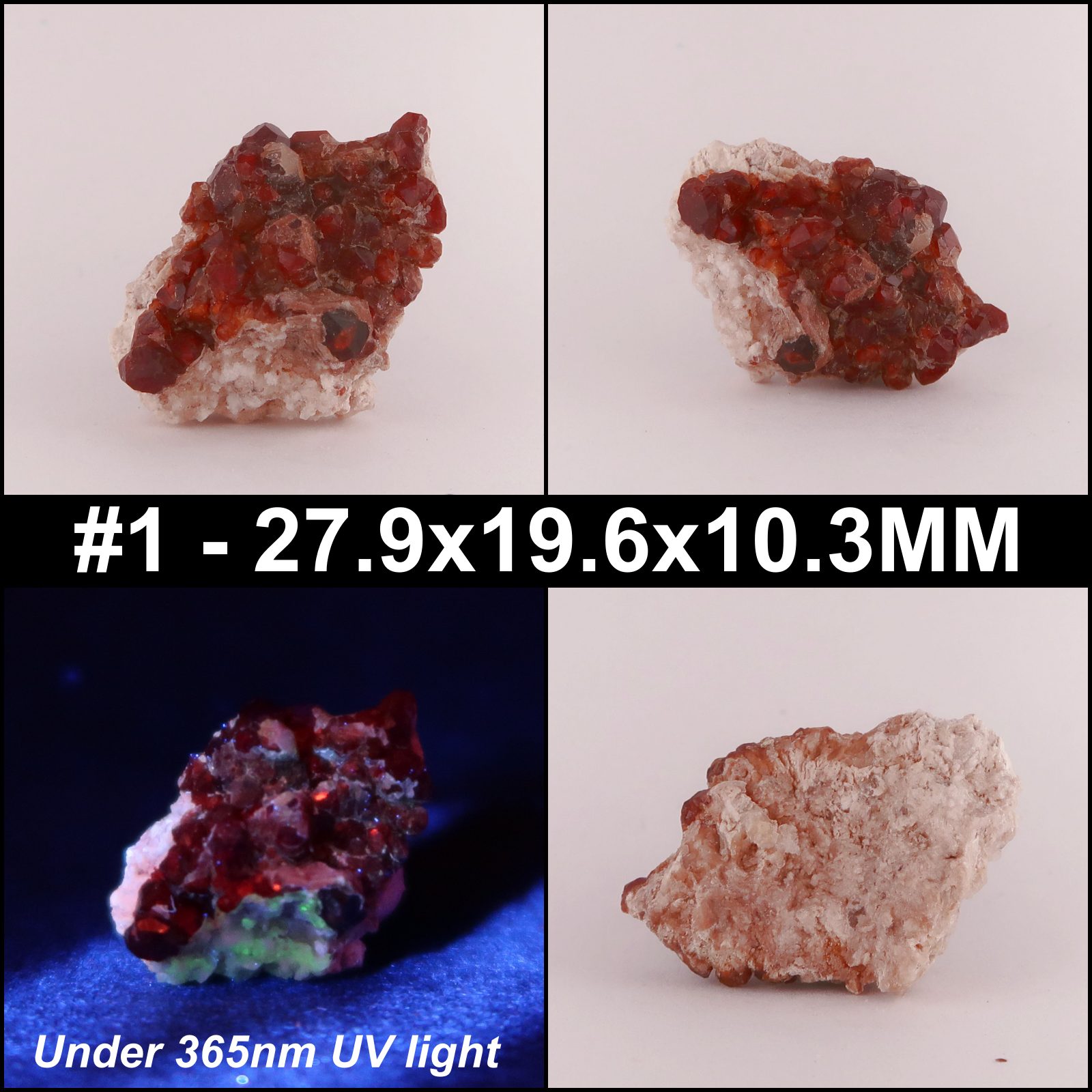 Very nice mixed specimen plates, consisting of a range of minerals – spessartine garnet, Opal-AN (hyalite), and occasionally quartz.
