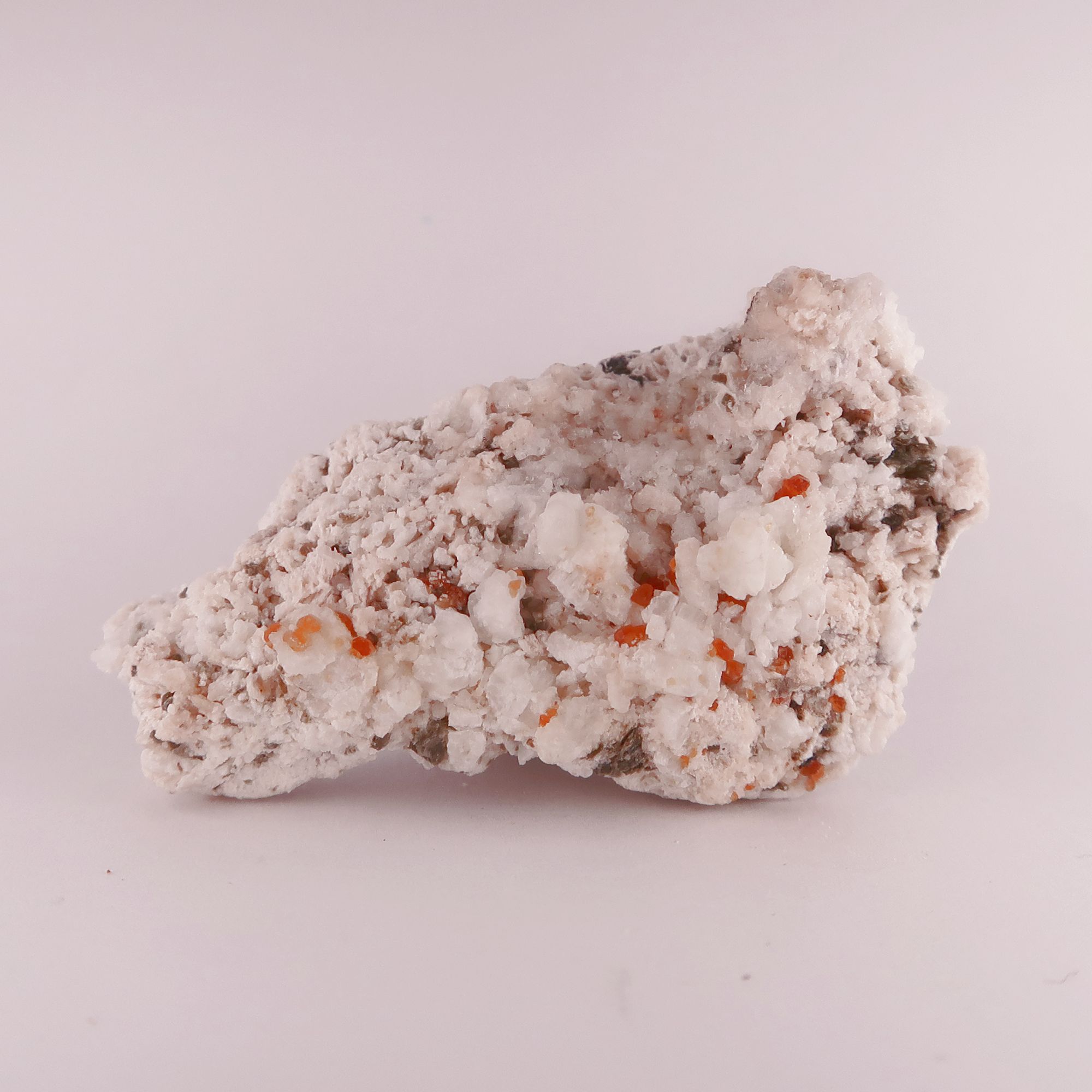 Very nice mixed specimen plates, consisting of a range of minerals – spessartine garnet, feldspars, Opal-AN (hyalite), and occasionally quartz.