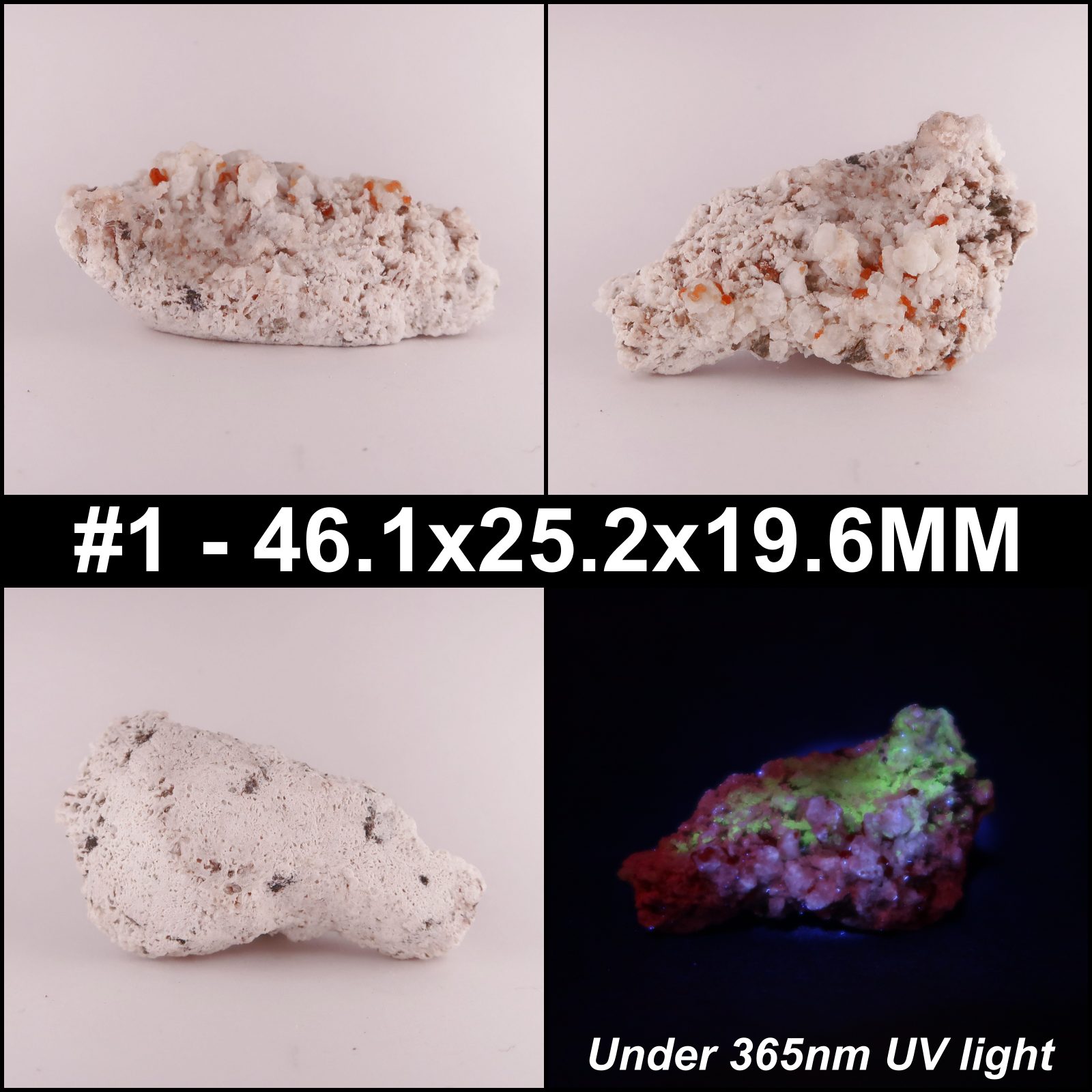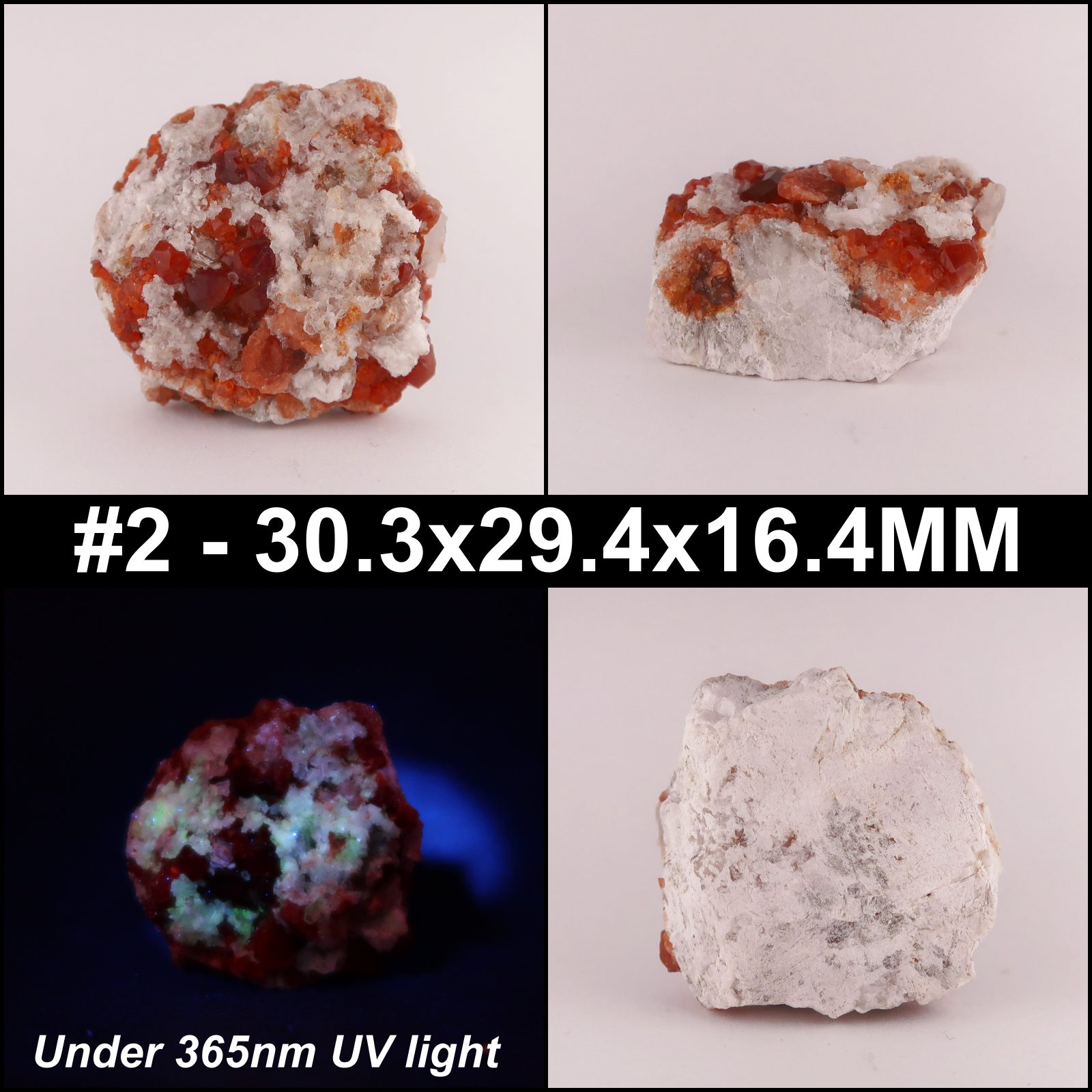 Very nice mixed specimen plates, consisting of a range of minerals - spessartine garnet, feldspars, Opal-AN (hyalite), and occasionally quartz. The hyalite opal is fluorescent under 365nm light - usually rather brightly.