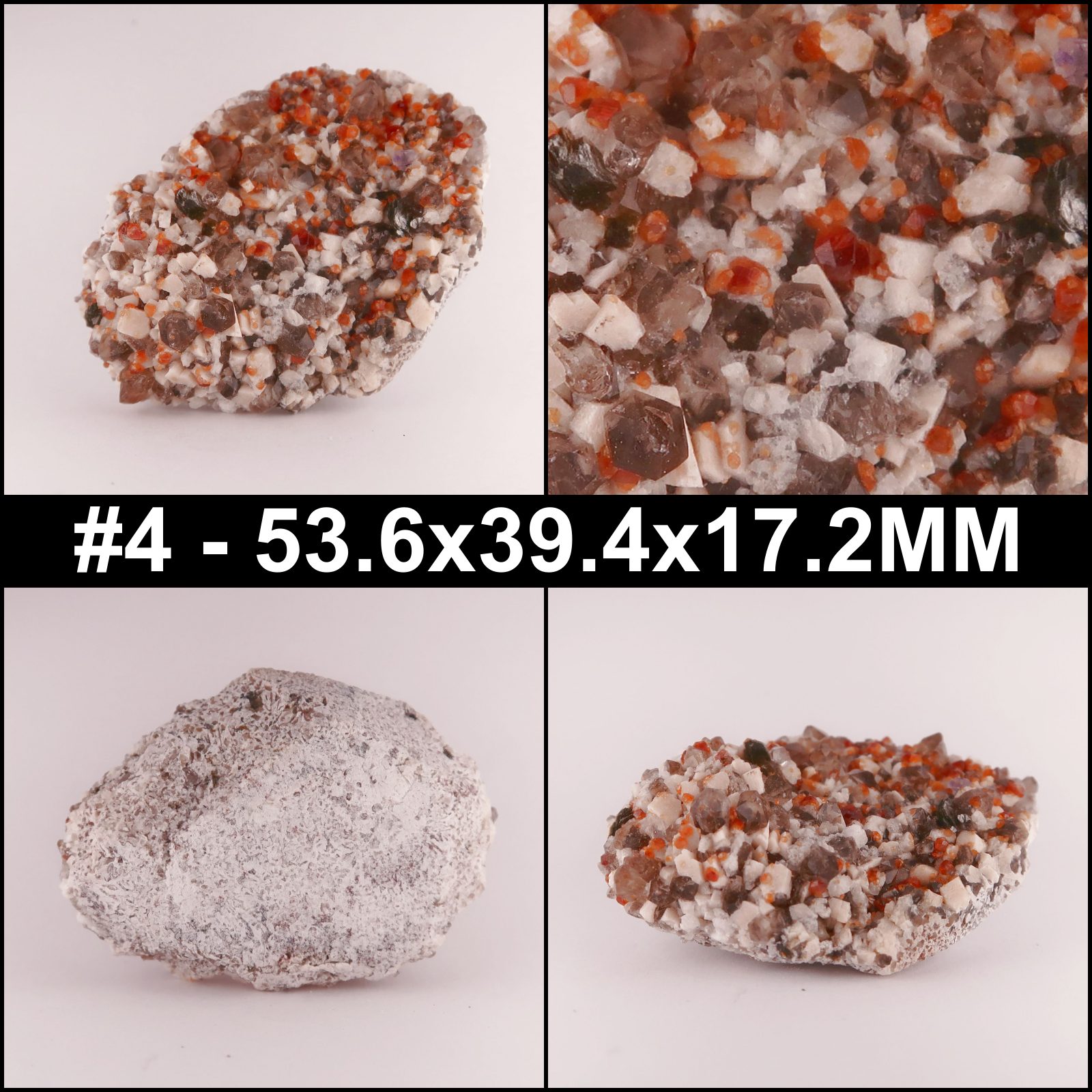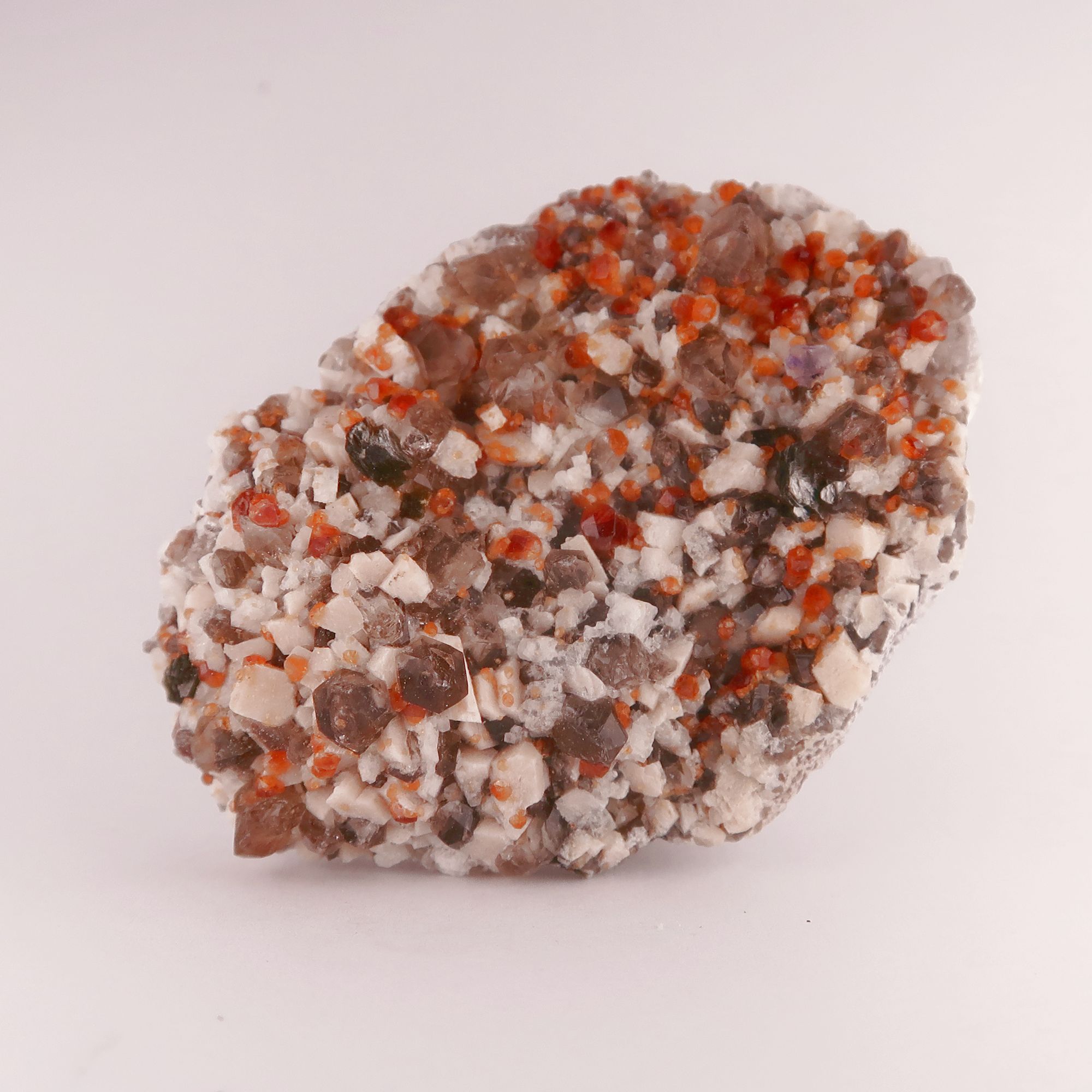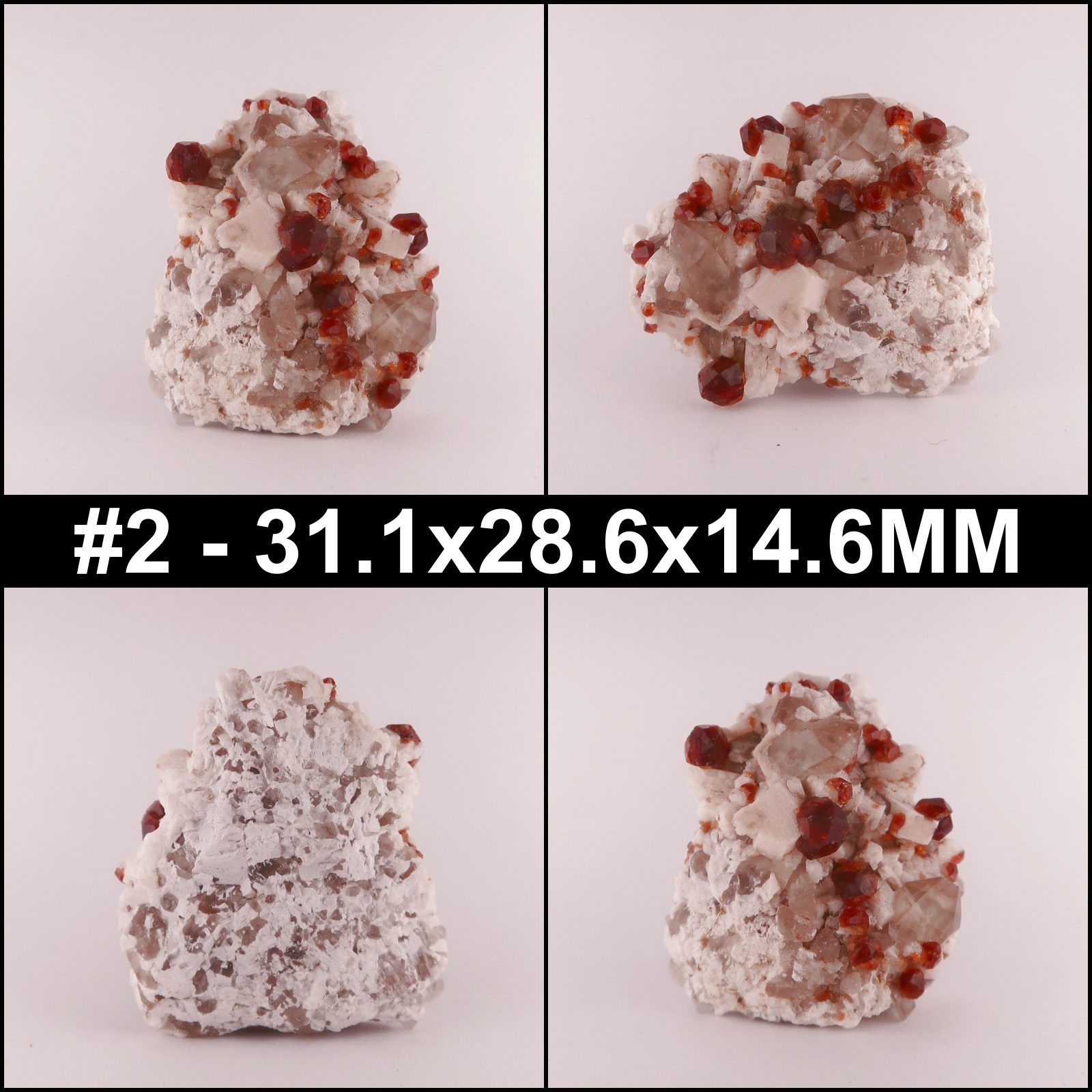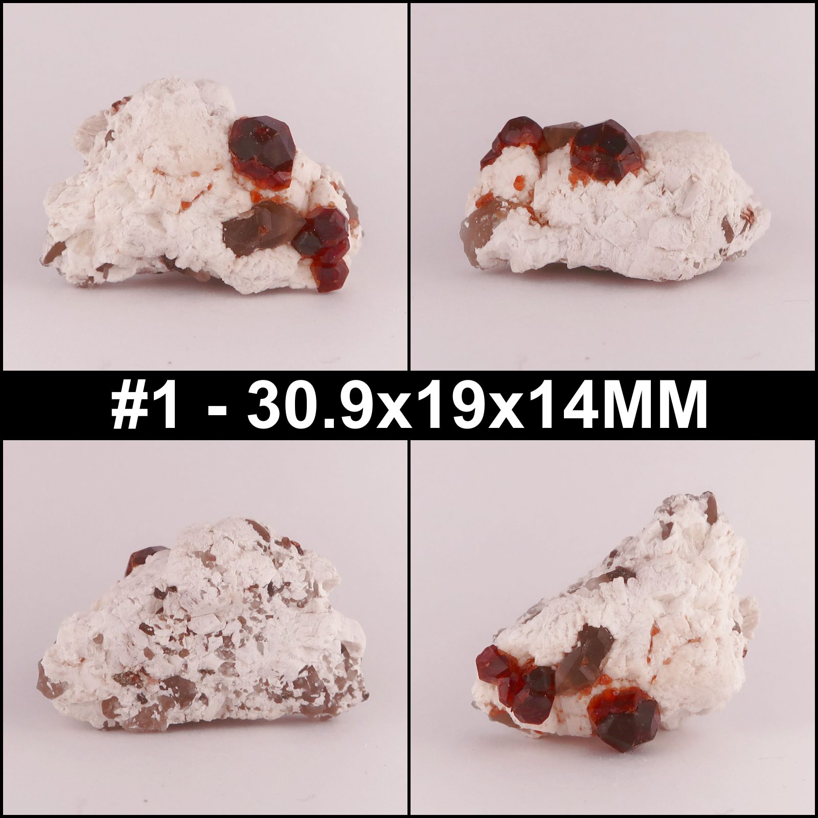 Quality specimens of spessartine garnet, feldspar, and quartz.