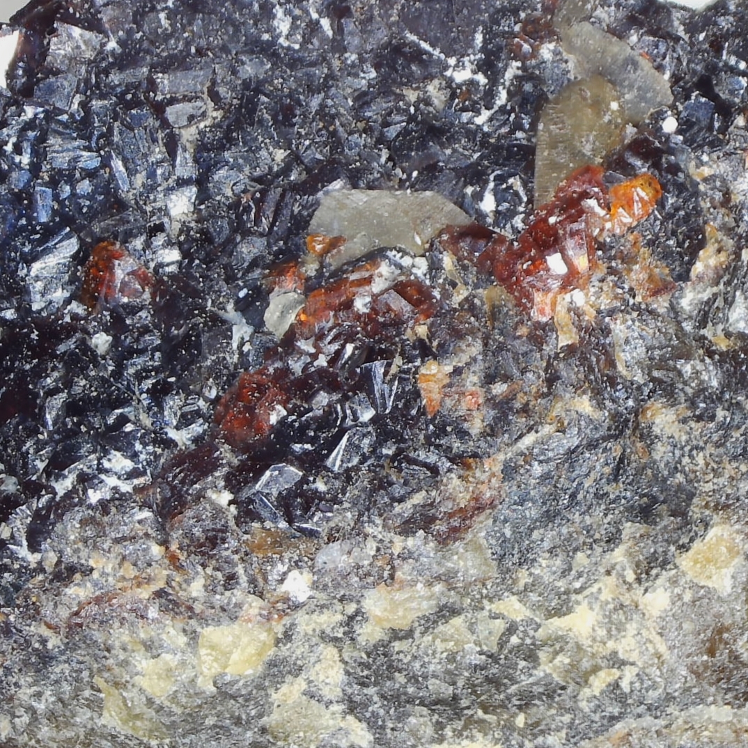 Orangey-red crystals on a grey-black matrix. Perhaps not the nicest, but a good reference specimen from the locale.